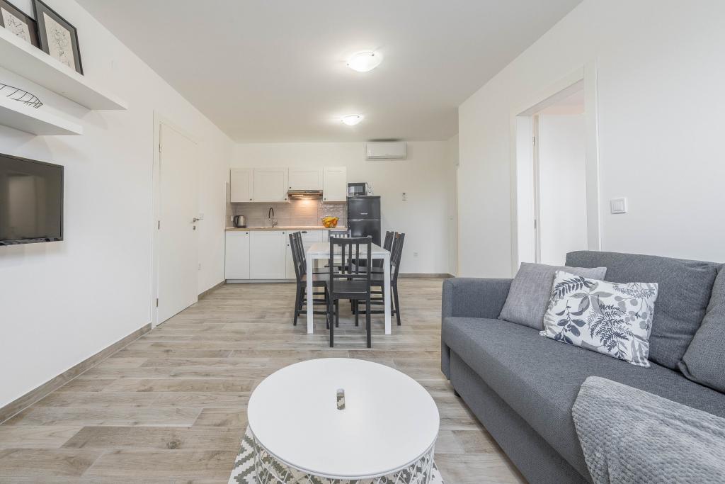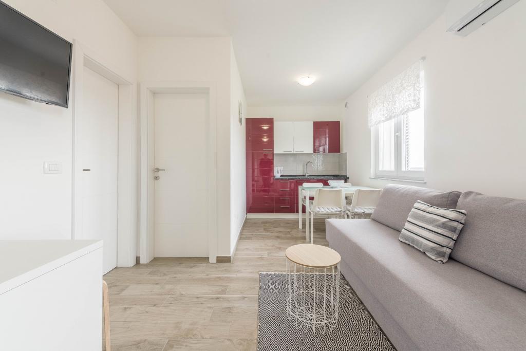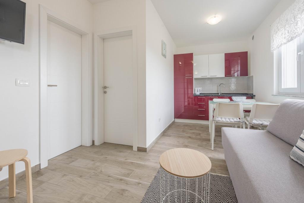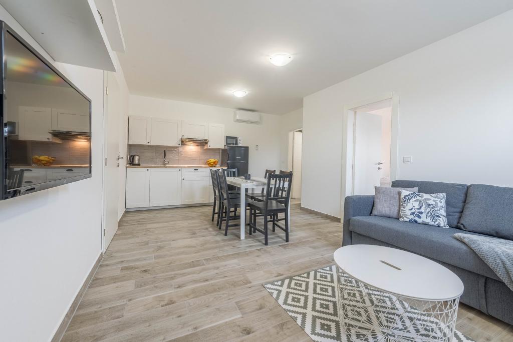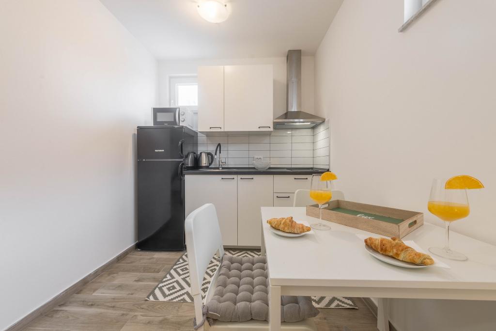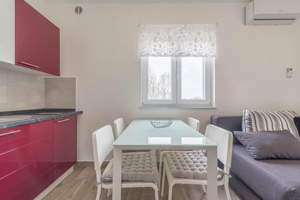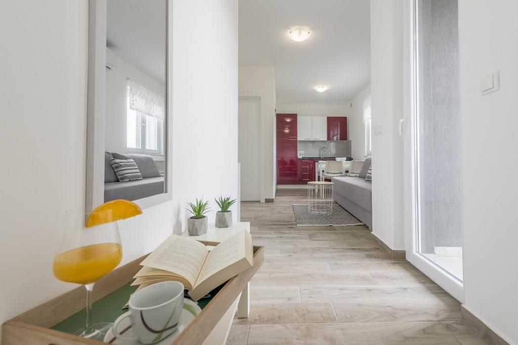 The apartments are very nicely decorated, everything is new and clean, and the owner is extremely kind and accommodating. The nearest beach with a long promenade is 5 minutes away. walk, and at a distance of 10 min. by car, there is also a beautiful sandy beach, ideal for families with children.