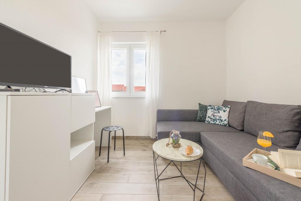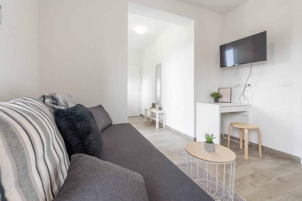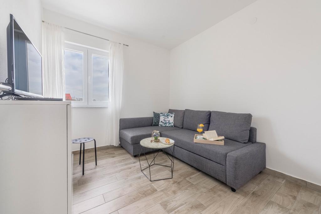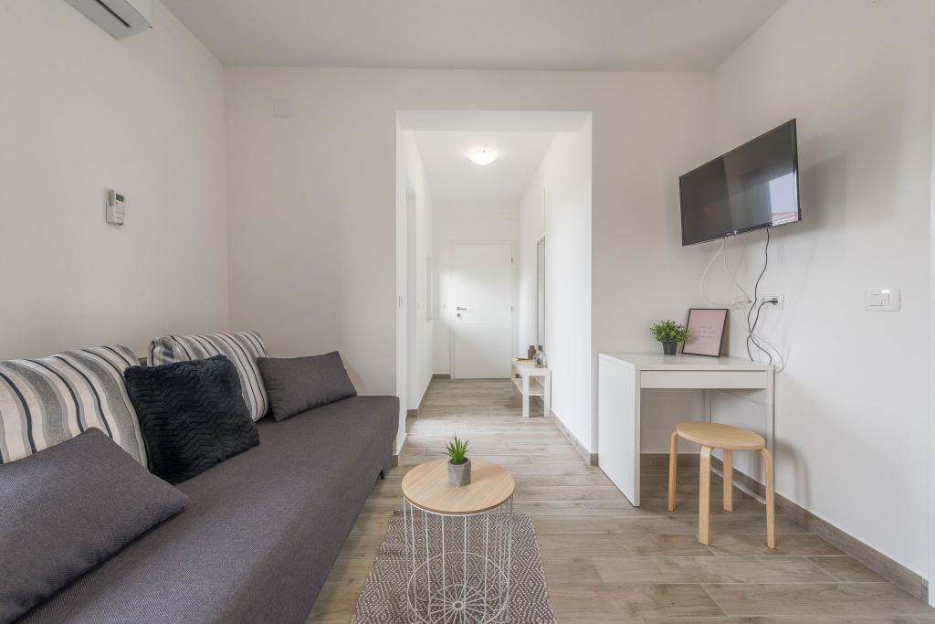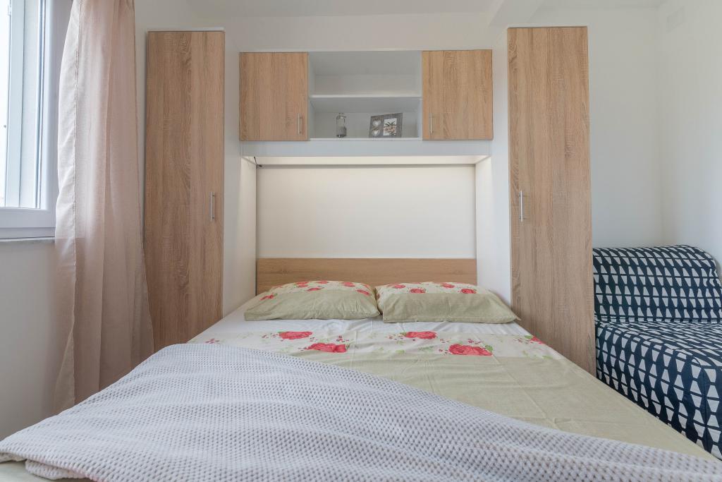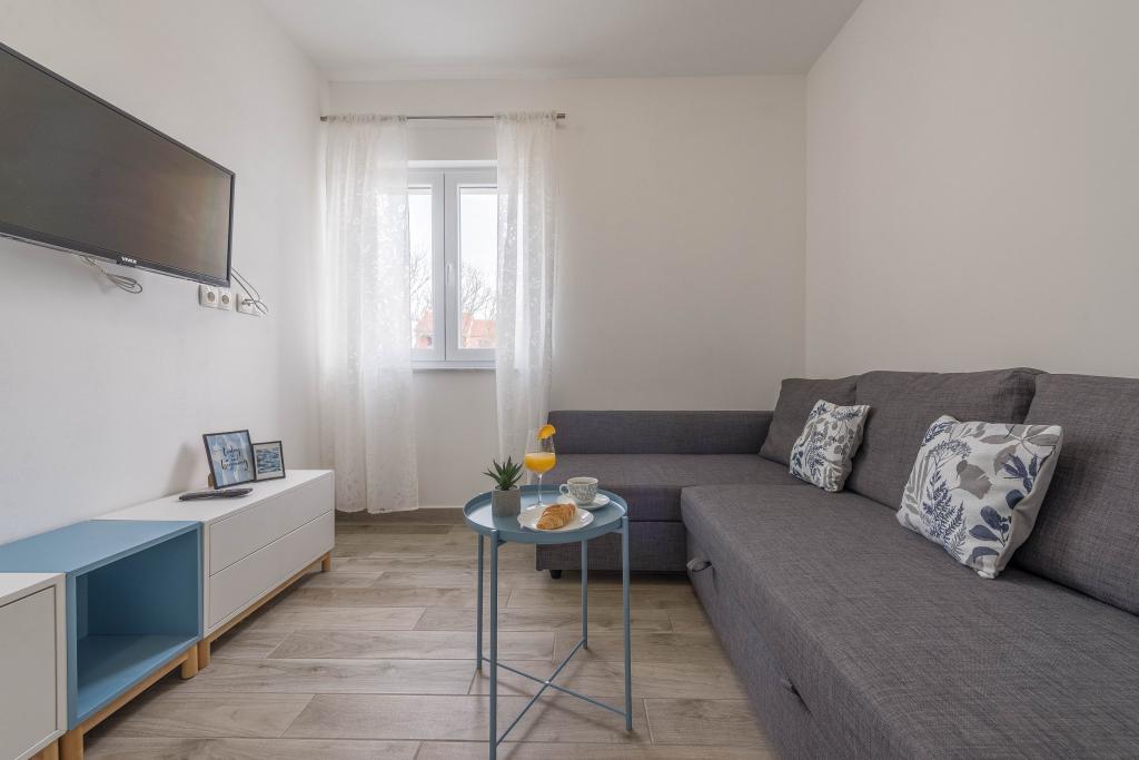 The apartments are very nicely decorated, everything is new and clean, and the owner is extremely kind and accommodating. The nearest beach with a long promenade is 5 minutes away. walk, and at a distance of 10 min. by car, there is also a beautiful sandy beach, ideal for families with children.