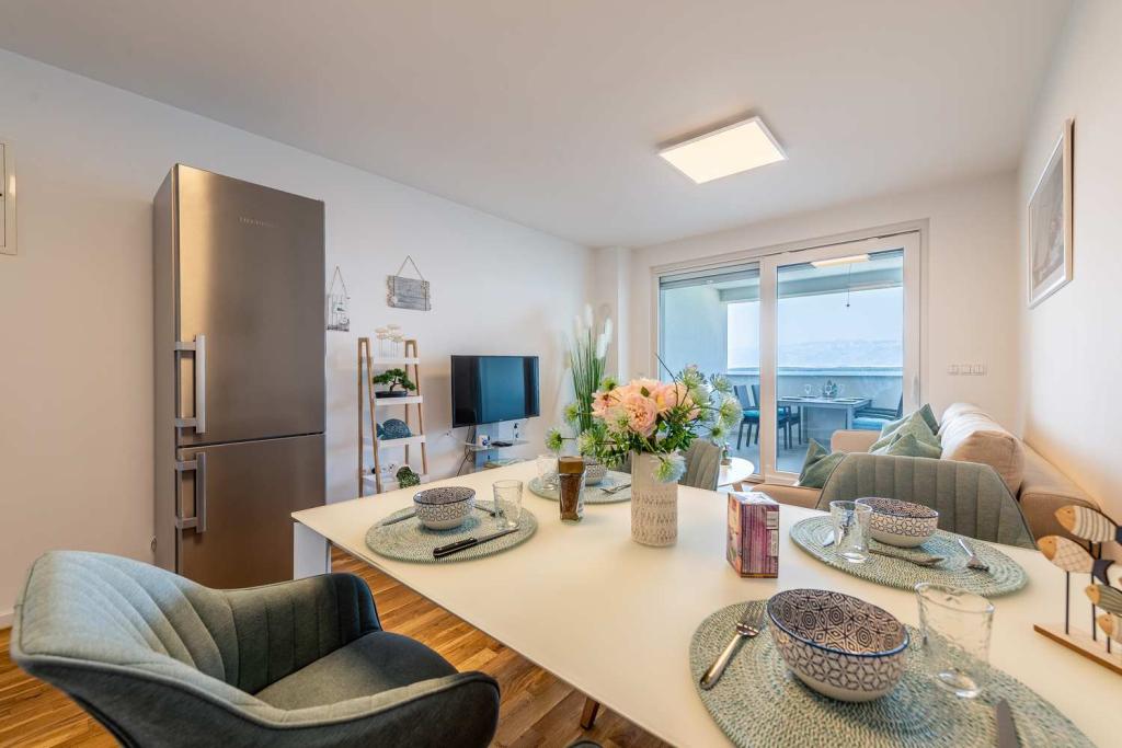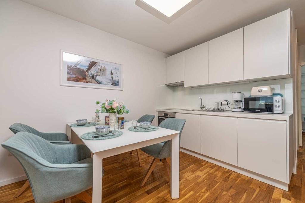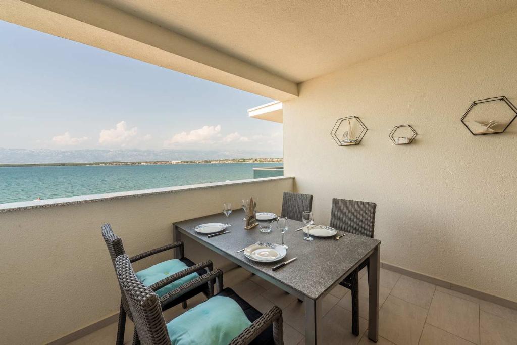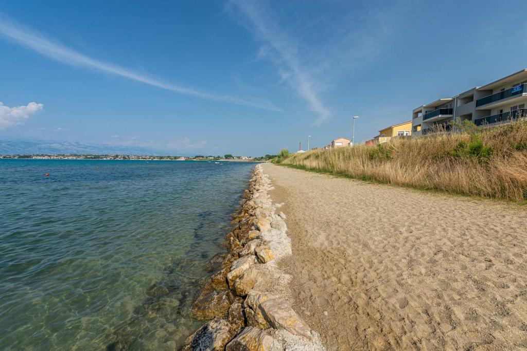FIRST ROW from the sea! 10 meters from the pedestrian beach. 5 minutes from the old town of Nin. modern apartment, nicely decorated, very well equipped kitchen (dishwasher, toaster, kettle, electric coffee maker, microwave, fridge and freezer, oven, 4 induction hobs. 1 bedroom with double bed + 1 bedroom with 2 beds. shower and washing machine. Fantastic sea view from your terrace.