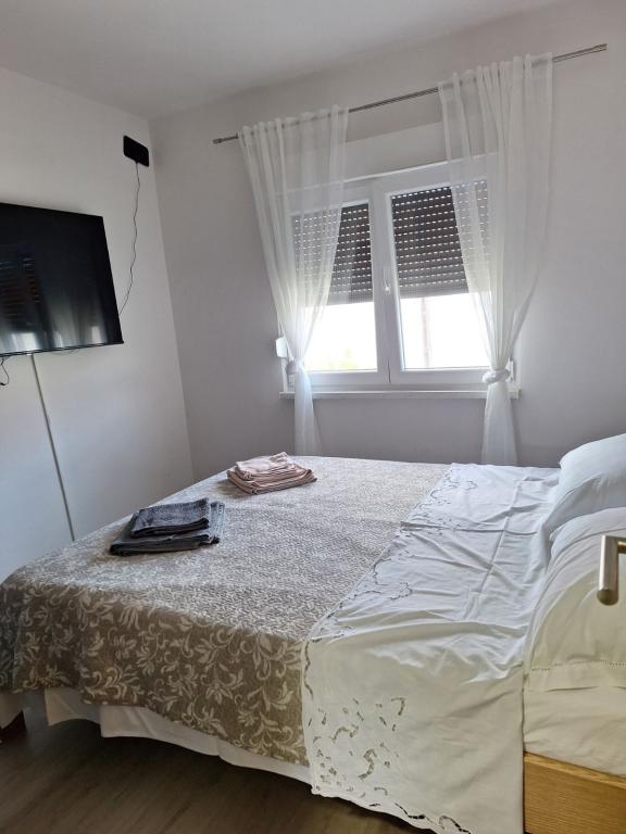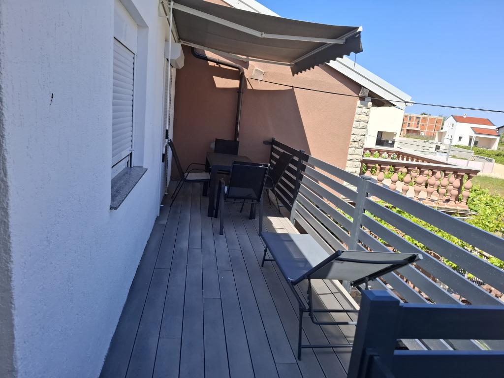 The apartments are located in Nin - the settlement of Ždrijac in a quiet area 150 m from the beach, i.e. a 5-minute walk, and 400 m from the town, i.e. a 10 to 15-minute walk along the pedestrian path. apartment 1... consists of 3 rooms, one of which is equipped with a TV and one room (living room equipped with a TV and a separate toilet (with a washing machine) and an extra bed, kitchen equipped with a dishwasher, refrigerator with freezer, microwave oven, kettle, bathroom with walk-in shower and hallway and terrace, while there is a reserved parking space in the yard. The apartment is registered for 6 people. apartment 2... consists of 2 rooms, one of which is equipped with a TV and an extra bed, and a kitchen, bathroom and balcony. There is a parking space in the yard. The apartment is registered for 4 people - the apartments have high-speed internet and TV (Netflix...) A 1 is priced higher if there are more than 4 people. A2 is priced higher if there are 4 people.