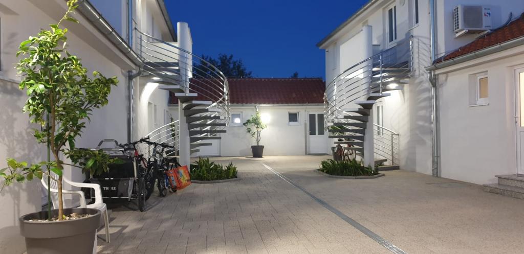 We spent a wonderful extended weekend at Villa Noah. The apartments are new, clean, beautiful, tidy and modern. There are enough dishes and space for cooking. The mattress is great. Nice terrace. You can use sun loungers in the yard for sunbathing and relaxing. Housewife good, helpful, always available. The apartments are near a beautiful, sandy beach Next to the apartment is a large parking lot. We definitely recommend