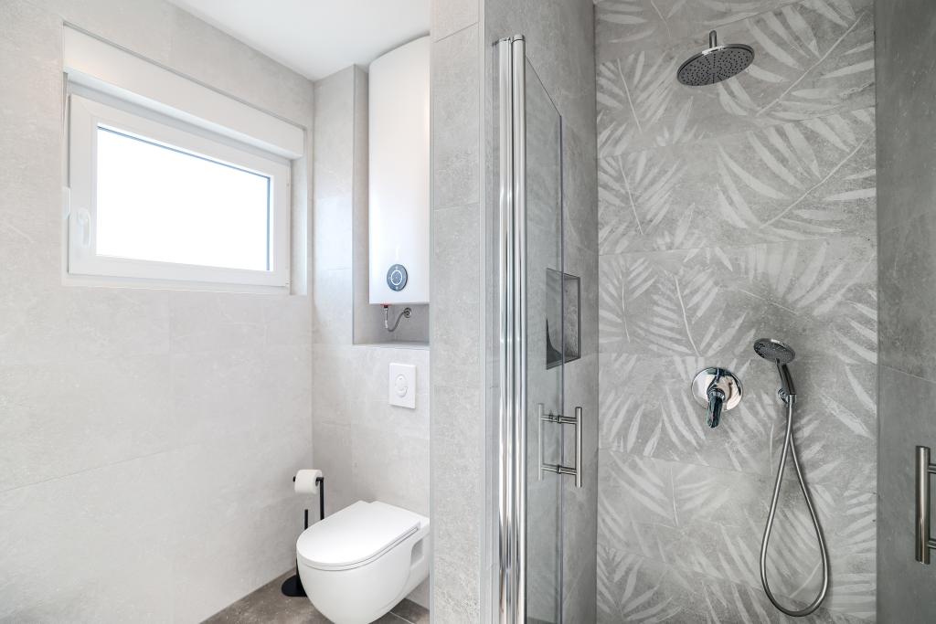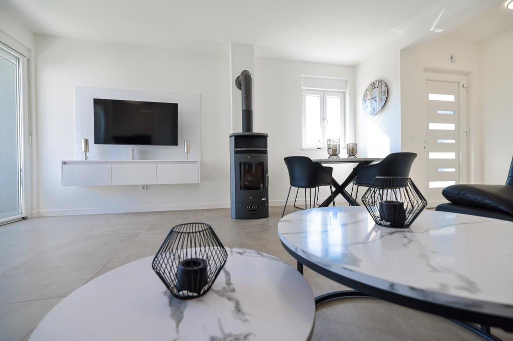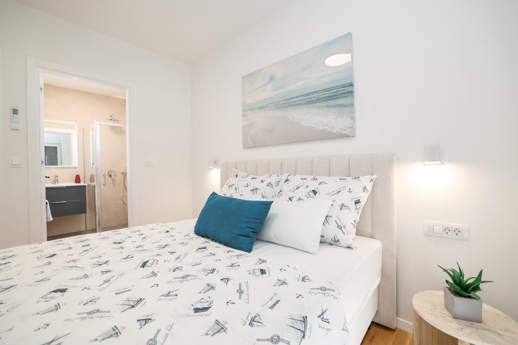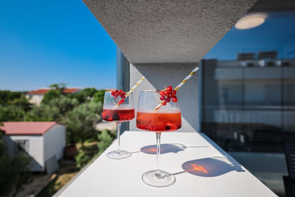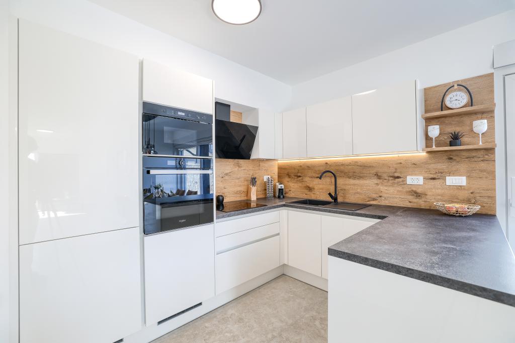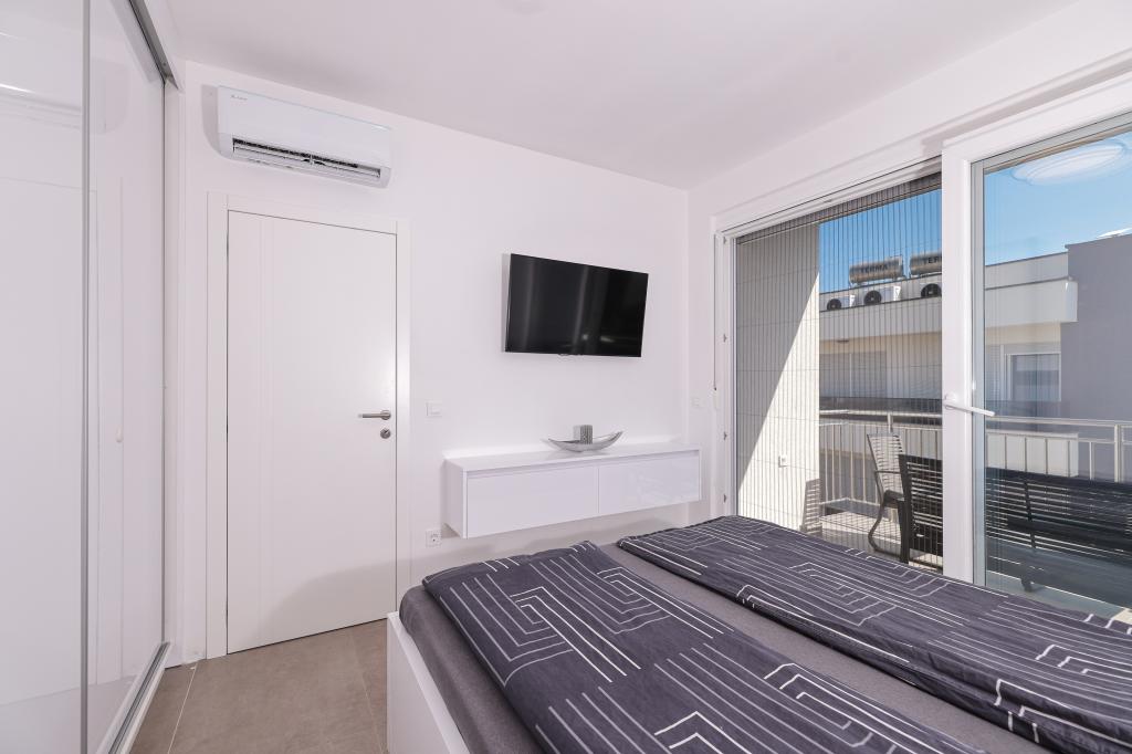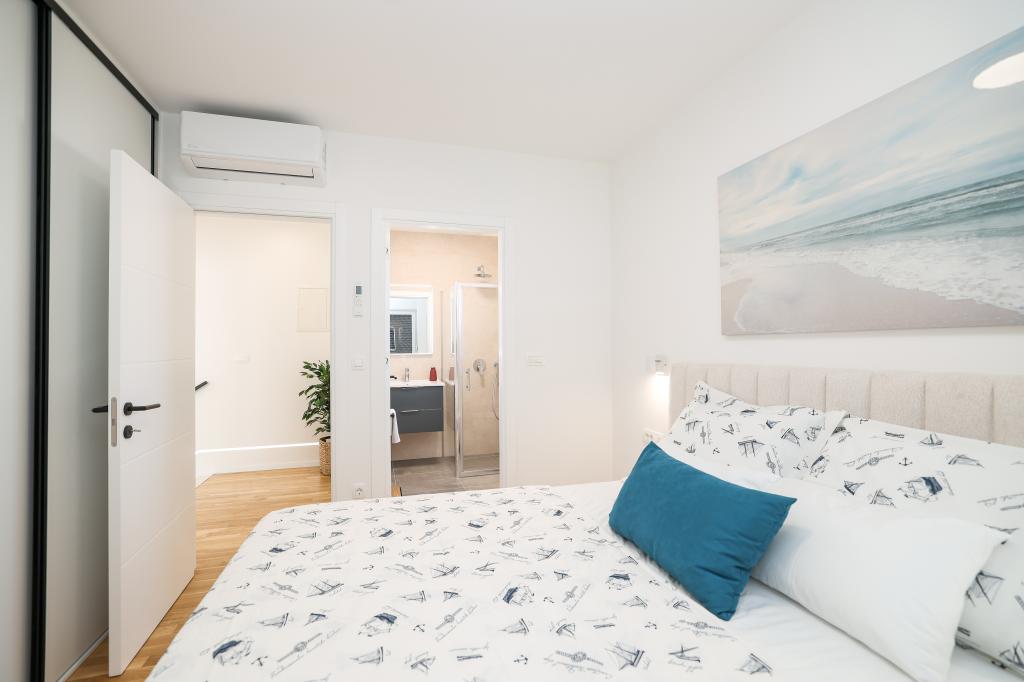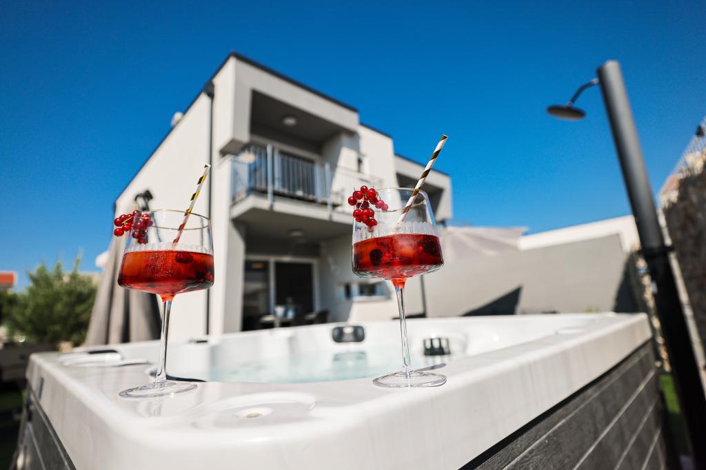Modern and fully furnished three-room apartment in a peaceful and quiet part of the village of Vrsi. The property is located 800 meters from the sea, has 3 bedrooms equipped with air conditioning and TV, two bathrooms, a beautiful terrace with a massage tub, a dining table and sun loungers. The kitchen is fully equipped, and another TV and air conditioner are available in the common area.