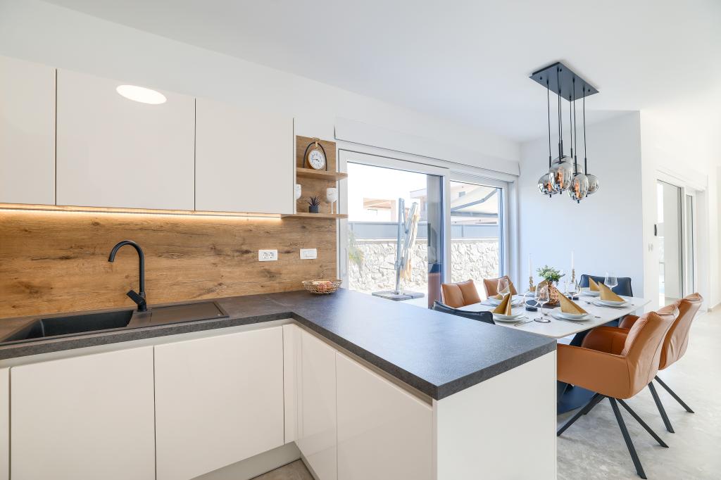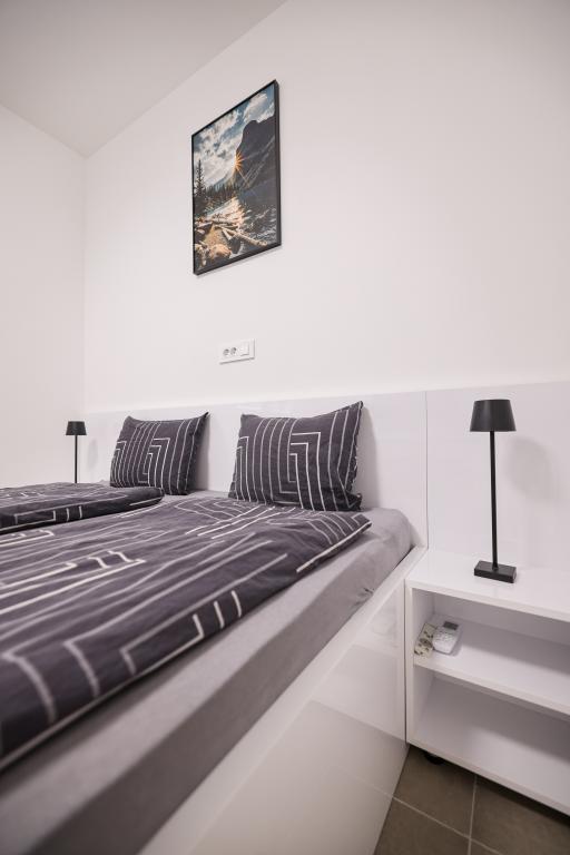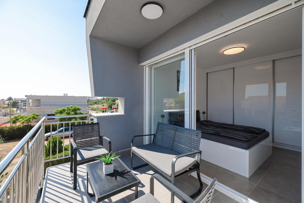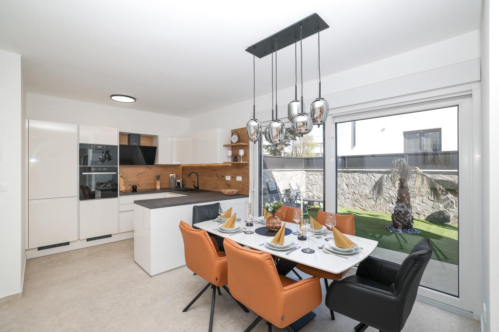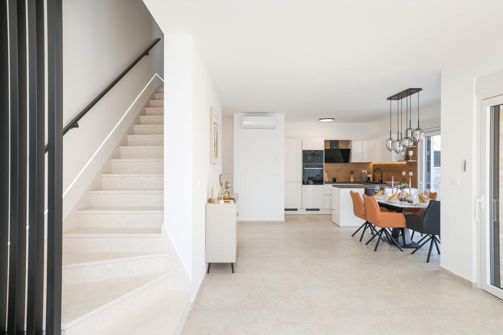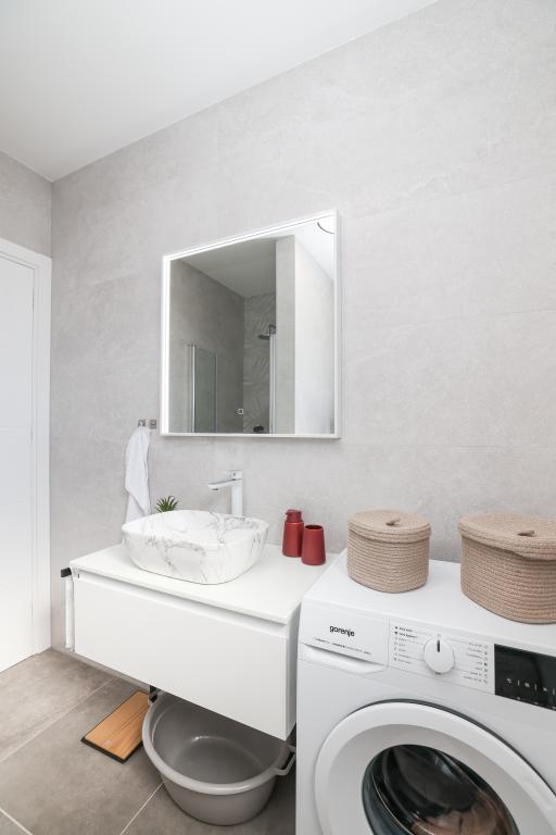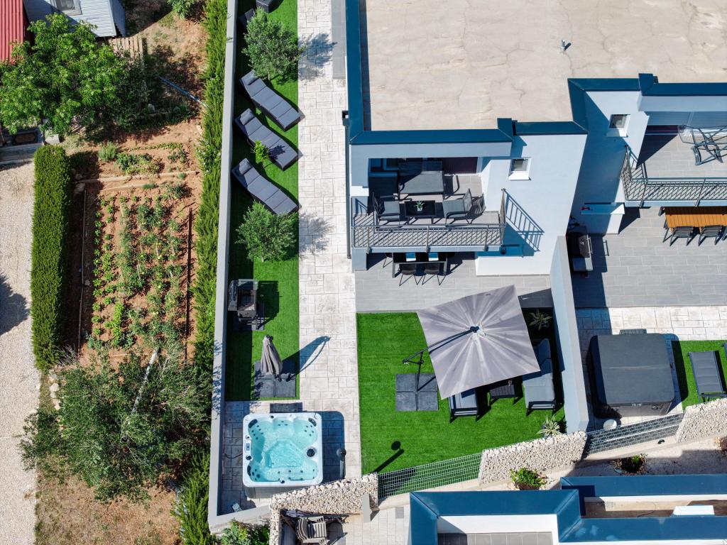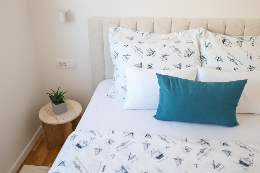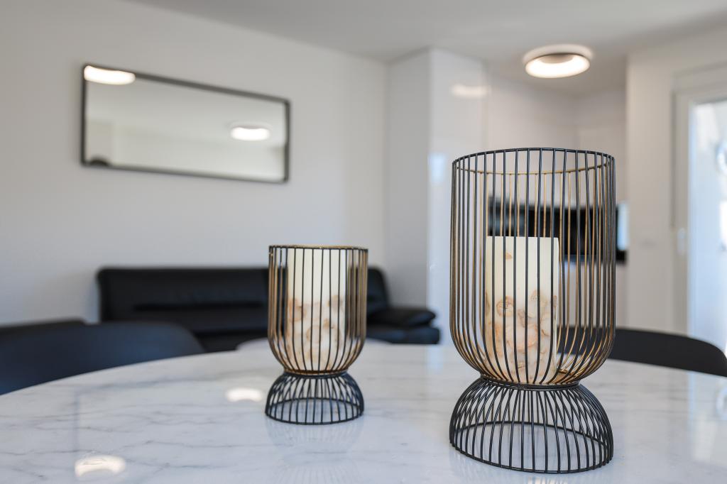 Modern and fully furnished three-room apartment in a peaceful and quiet part of the village of Vrsi. The property is located 800 meters from the sea, has 3 bedrooms equipped with air conditioning and TV, two bathrooms, a beautiful terrace with a massage tub, a dining table and sun loungers. The kitchen is fully equipped, and another TV and air conditioner are available in the common area.