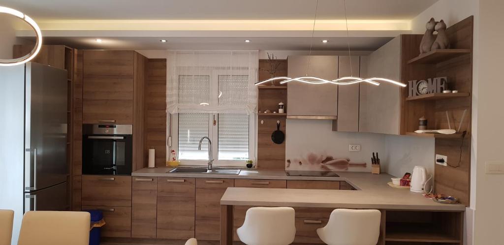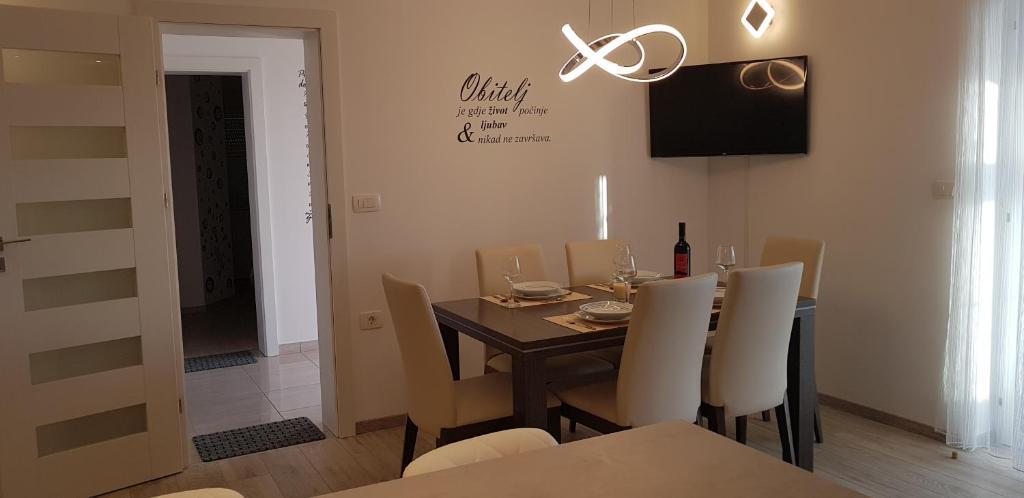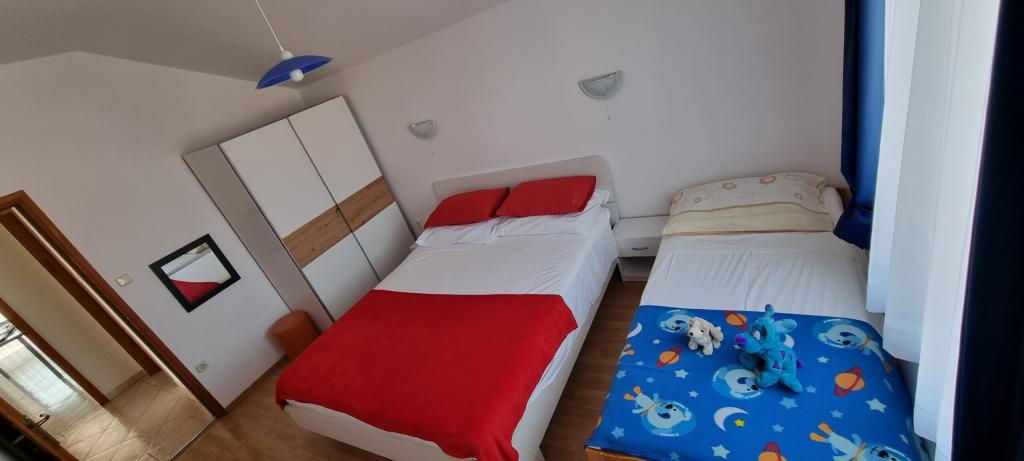 The family house is located in Vrsi, which is 20 km from Zadar, about 5 km from the royal city of Nin. The apartments are located on the first and second floor of the house, from which you can see a wonderful view of the sea, which is only 150 m away. The house has a large yard and six parking spaces for guests. The distance from the shops, butcher, bakery, market, restaurant, bus station is about 100 m. Visit us and enjoy the clear sea, the beautiful sunset and feel at home! The town has a rich 34 km long coast, with diverse beaches.