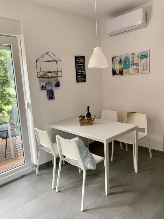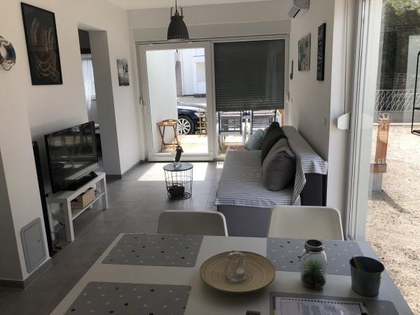 The apartment is clean and modernly decorated, equipped with all the necessary amenities. We especially highlight the beautiful terrace and the comfort of the bed - none of the 4 of us had to sleep on the couch. It is very close to the beach. We are satisfied with the price. The hosts are extremely kind and helpful. The garden is beautifully decorated with fragrant Mediterranean plants and there is enough space for parking. A bonus for us were the visits of hedgehogs and turtles that regularly pass through the property. We will definitely be back.