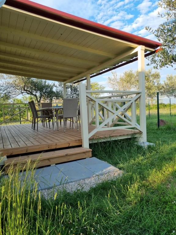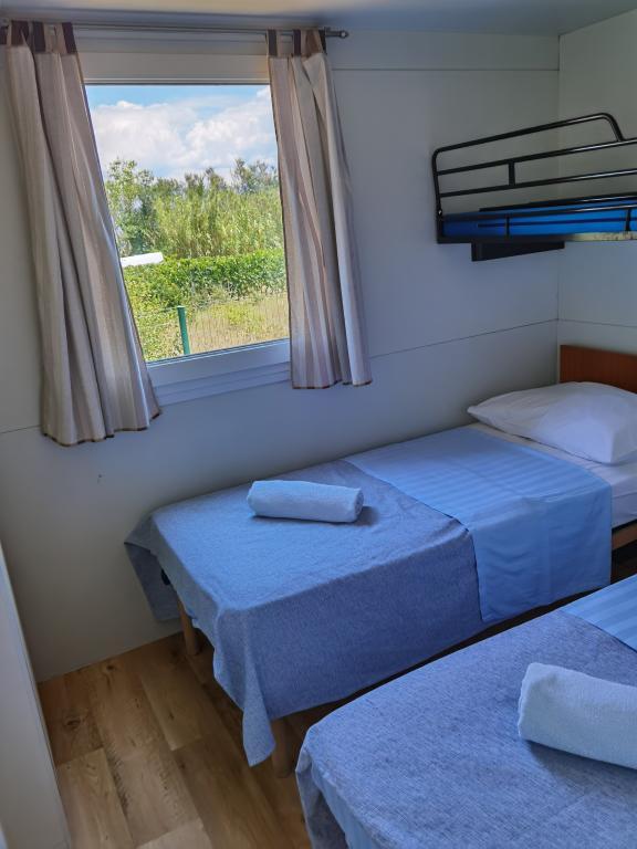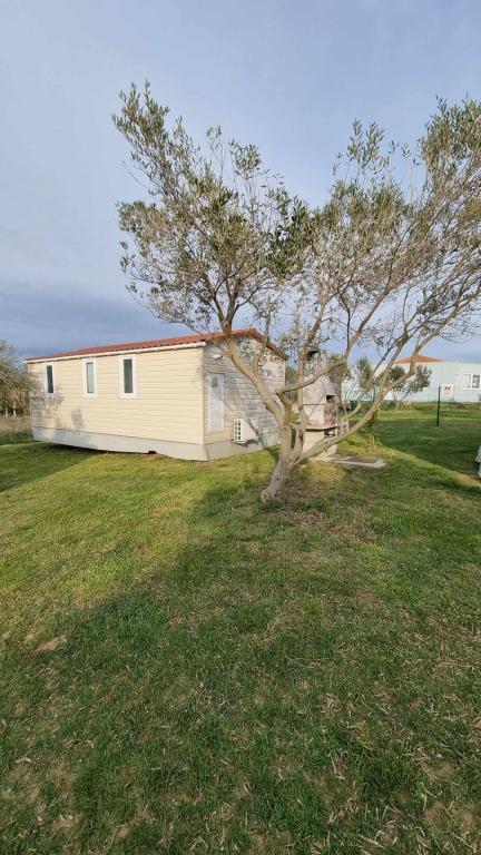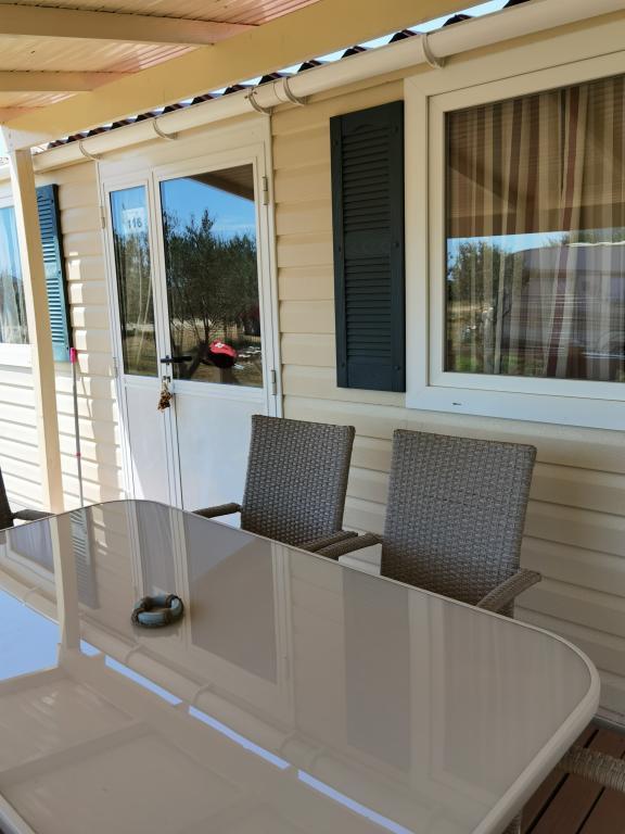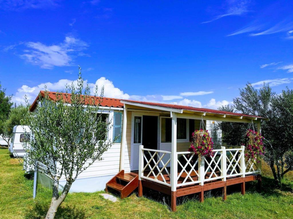 At the entrance to Camping Nin are modernly furnished mobile homes. The terrace offers a view of the sea and the old town of Nin. The facilities are located a 5-minute walk from Kraljičina beach and a 10-minute walk from the center and all necessary amenities. The houses are in a quiet and relaxing environment surrounded by olive trees.