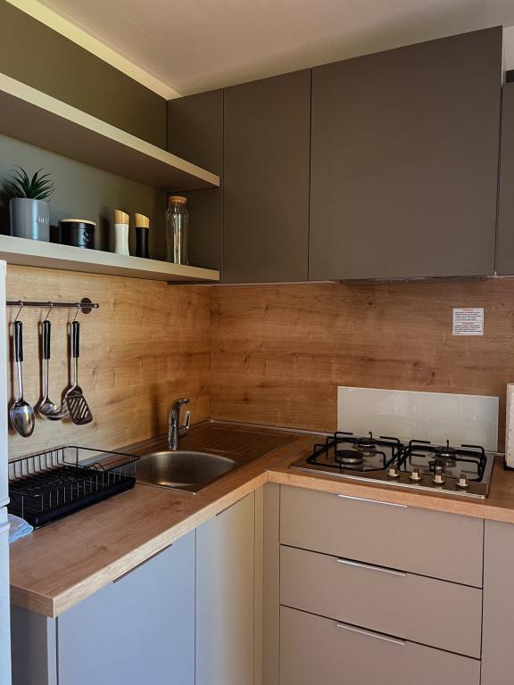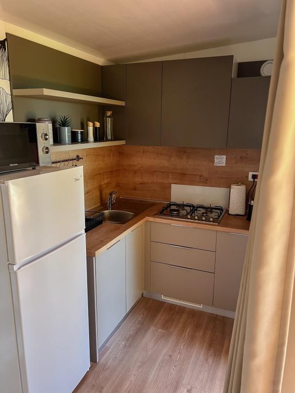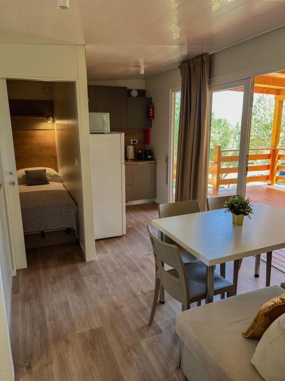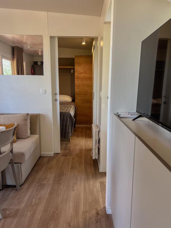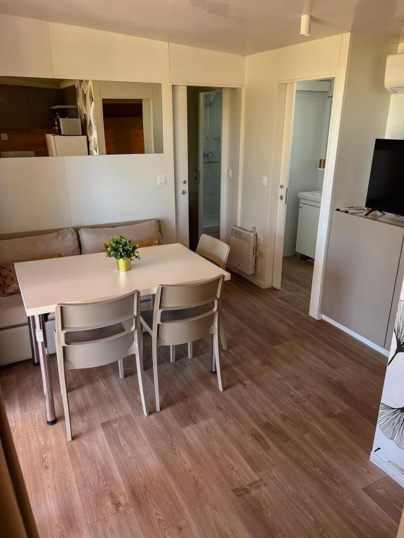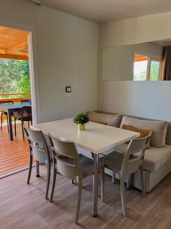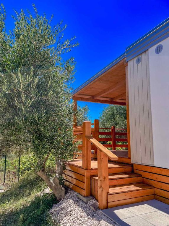 At the entrance to Camping Nin are modernly furnished mobile homes. The terrace offers a view of the sea and the old town of Nin. The facilities are located a 5-minute walk from Kraljičina beach and a 10-minute walk from the center and all necessary amenities. The houses are in a quiet and relaxing environment surrounded by olive trees.