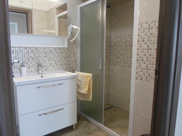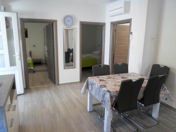 The apartment is very neat and clean, well equipped, with very pleasant hosts. All accompanying facilities nearby (pharmacy, shop, beach, post office, restaurants).