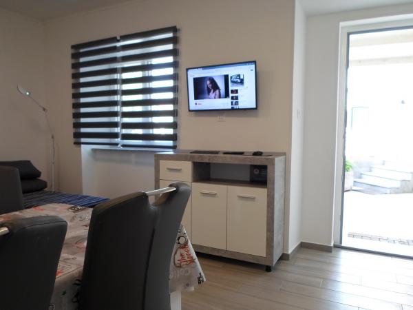The most beautiful apartment so far, modernly furnished, with two bedrooms (large, comfortable beds and large closets, comfortable yogis), the bathroom has a washing machine, the kitchen also has a lot of equipment (almost more than at home) and a dishwasher. All cleaners next to the dishes, the dishwasher and the washing machine. Owners super friendly - bought a gift for a son who had a birthday in those days. The apartment is a few steps away from the beautiful beach, but just so far away that there is no hustle and bustle. brought to the terrace. 5 minutes away are restaurants, pastry shops with the best ice cream, stalls, not that there is no ... (Njivice) are the law - we recommend :)