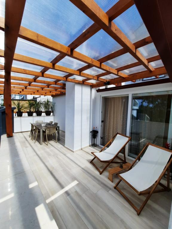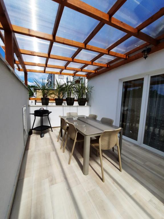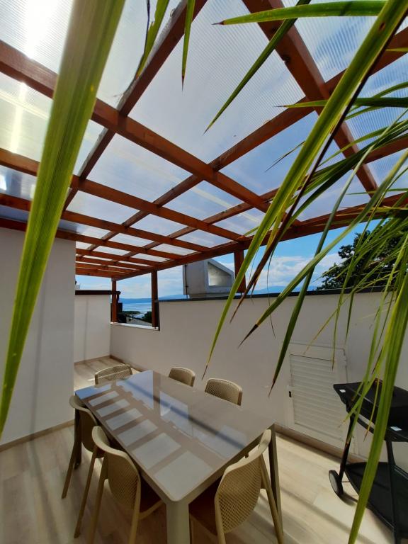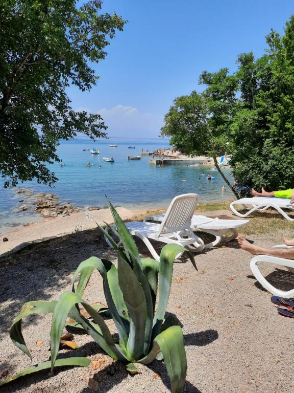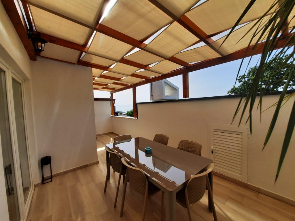 The apartment is completely newly decorated with two bedrooms, living room, dining room, bathroom, hallway and terrace overlooking the sea. On the terrace we offer deck chairs, a large table for 6 people and a barbecue. The apartment is located in Kijac, about 1 km away from the center of Njivice. It is equipped with two air conditioners. The sea is only 200 m away.