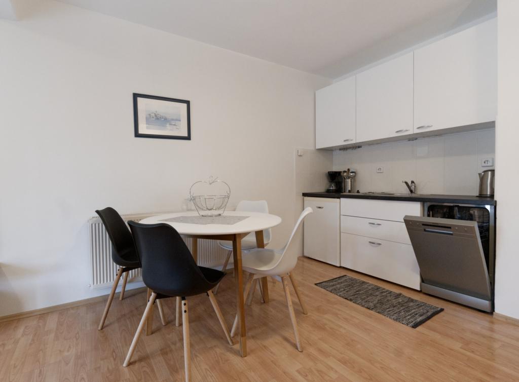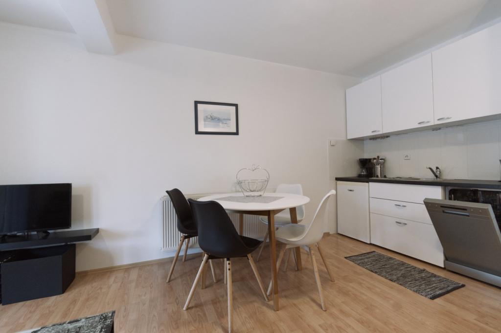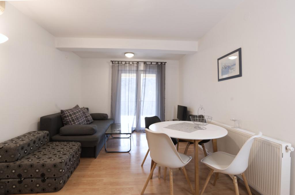 Modern apartments are located in the small fishing village of Njivice, on the island of Krk. Njivice is only 11 km from Rijeka Airport. The property is located a 3-minute walk from the town center and beautiful pebble beaches where you can relax and enjoy the sun and sea. The place is ideal for families with small children and people who want to enjoy the fresh air. The apartments consist of one bedroom, bathroom, spacious living room with kitchen and dining room, balcony and a beautiful spacious terrace which is ideal for morning coffee, and also for evening enjoyment while the fresh air comes from the forest. Thanks to the sofa bed in the living room, it allows accommodation for two additional people. The studio consists of a living room with a bed, dining room and separate kitchen, separate bathroom, and a small covered terrace in front of the entrance (20m2).