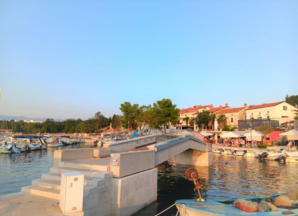Apartments Malenica, Njivice, island Krk, Croatia Welcome to apartments Malenica, Njivice, island Krk, Croatia! Family house in Njivice on the island of Krk has two apartments (A-1) for 4+1 persons and one studio apartment (S-1) for 2 persons. Apartments A-1 has approx. 60 m2 + balcony approx. 7 m2. Apartments A-1 has a living room, kitchen, bathroom (shower), 2 bedrooms and a balcony. Apartment A-1 has a sea view. Studio apartment (S-1) is approx. 20 m2 + terrace 25 m2. Both apartments have air conditioning, free WI-FI, TV (SAT). Distance to the first beach is 200 meters. There is a private parking lot for guests next to the house. Njivice is the youngest town on the island of Krk, which was created thanks to tourism. In the center of the town there is a small harbor with beaches stretching to the right and left. Here is the center of Njivice: with numerous restaurants, pubs and pastry shops. The beaches in Njivice are pebbly and partly concreted, while outside the town there are natural rocks beneath which are small coves.