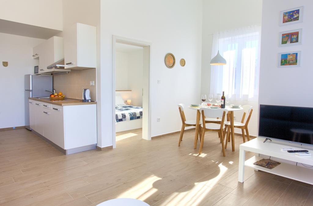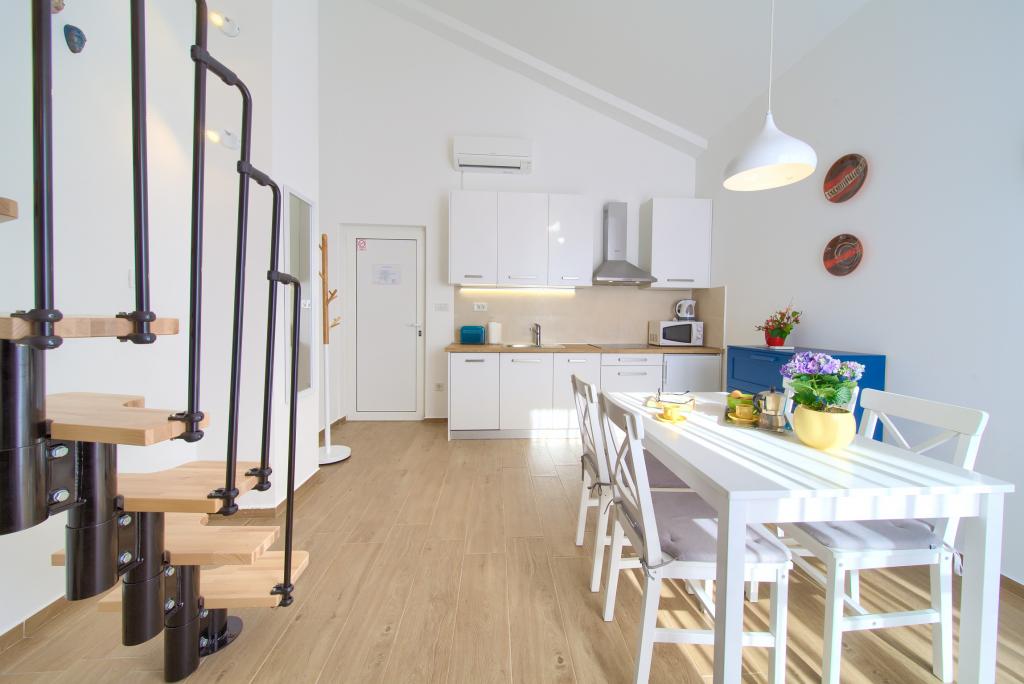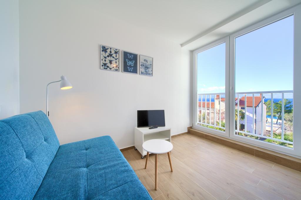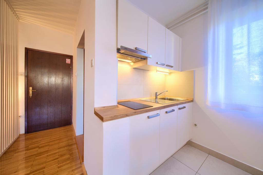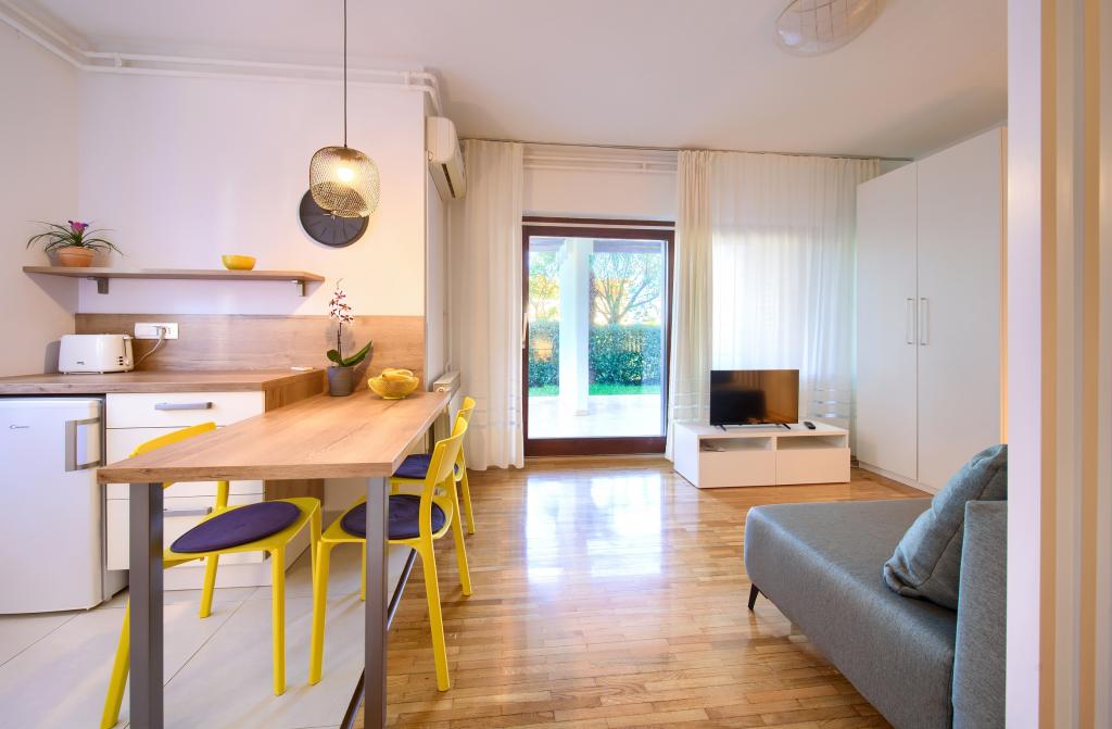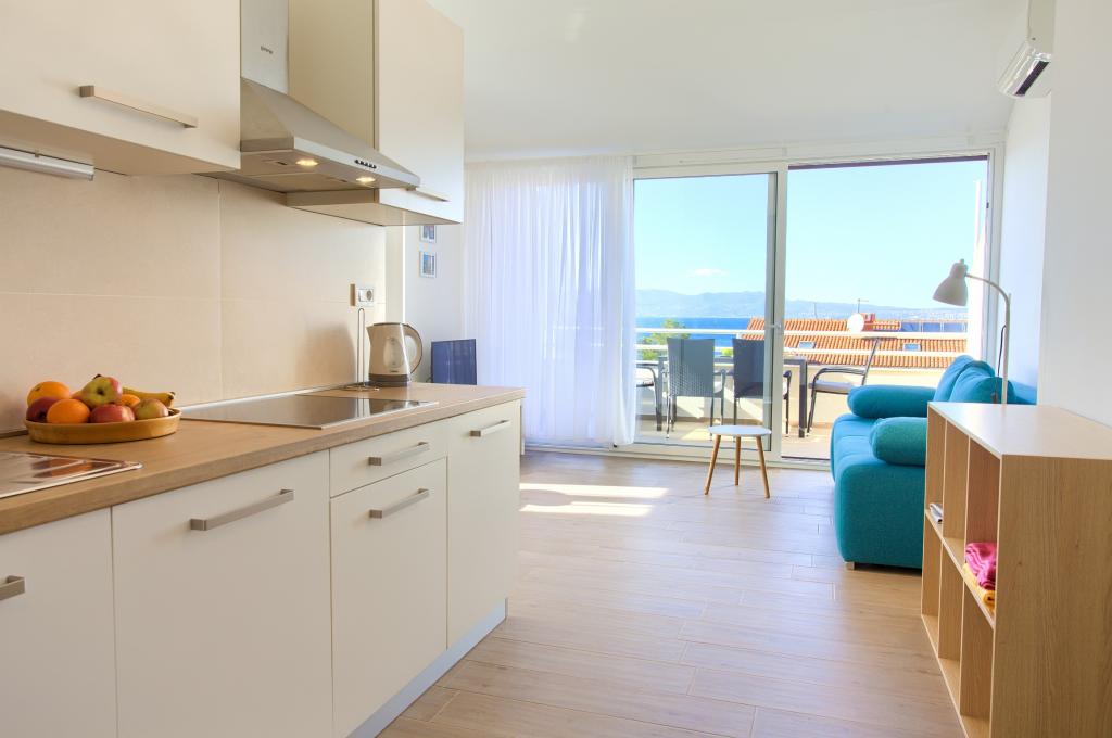We stayed 12 days in the downstairs studio. Very spacious, clean, equipped with all comforts, tastefully furnished in a modern style. There is also a spacious veranda where you can have meals and hang out. Towels and sheets are available for changing. Free parking just outside the apartment. Enviable position, a stone's throw from the center and the sea. Katarina, her husband and mother are exquisite people, always helpful and kind, plus they speak Italian. We stayed with our 5 month old baby and we enjoyed it very much, thanks to the large spaces and the convenient location. I recommend Apartaments Meri for your holidays in Njivice