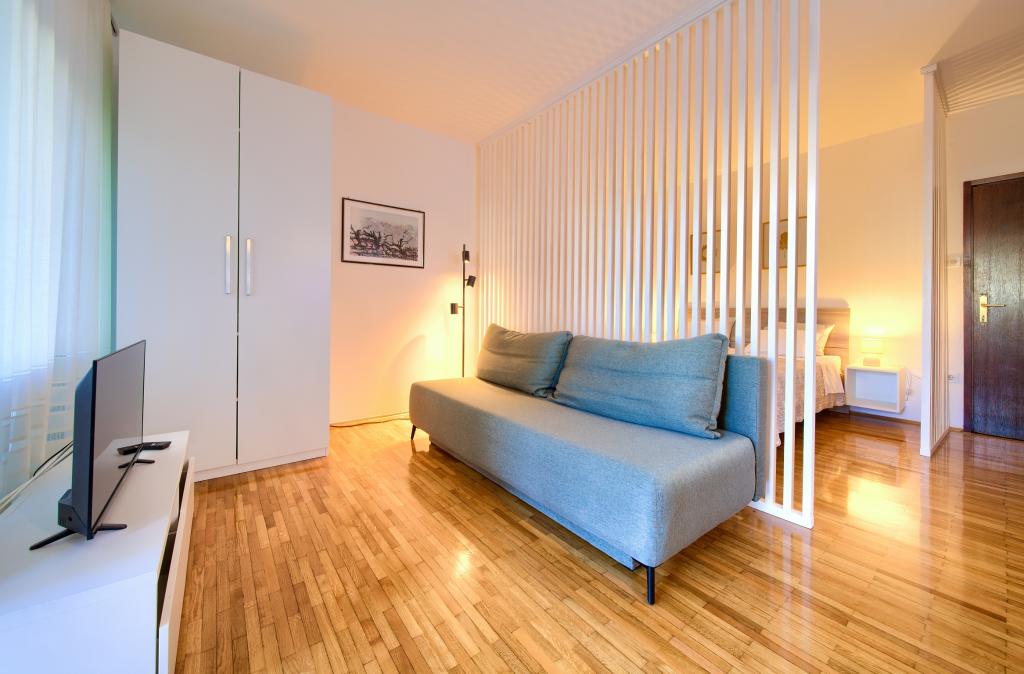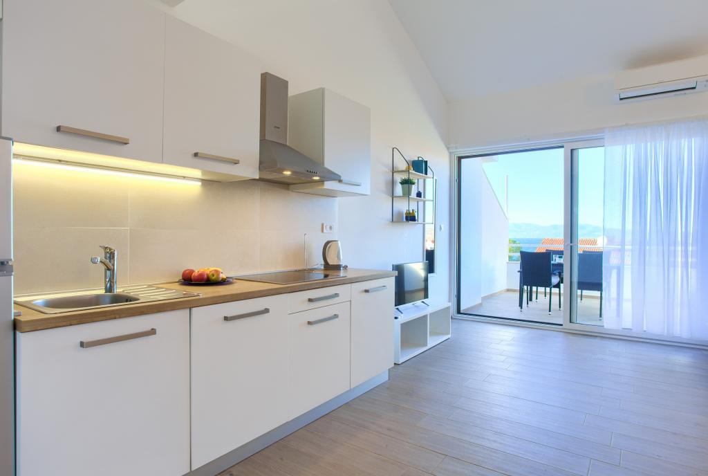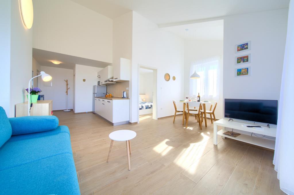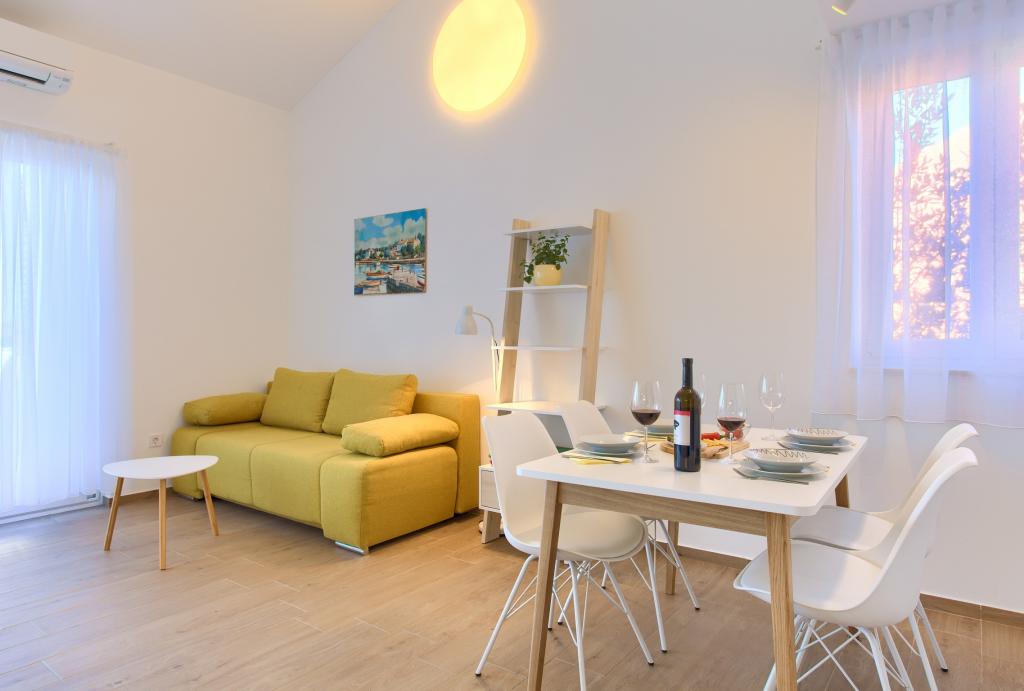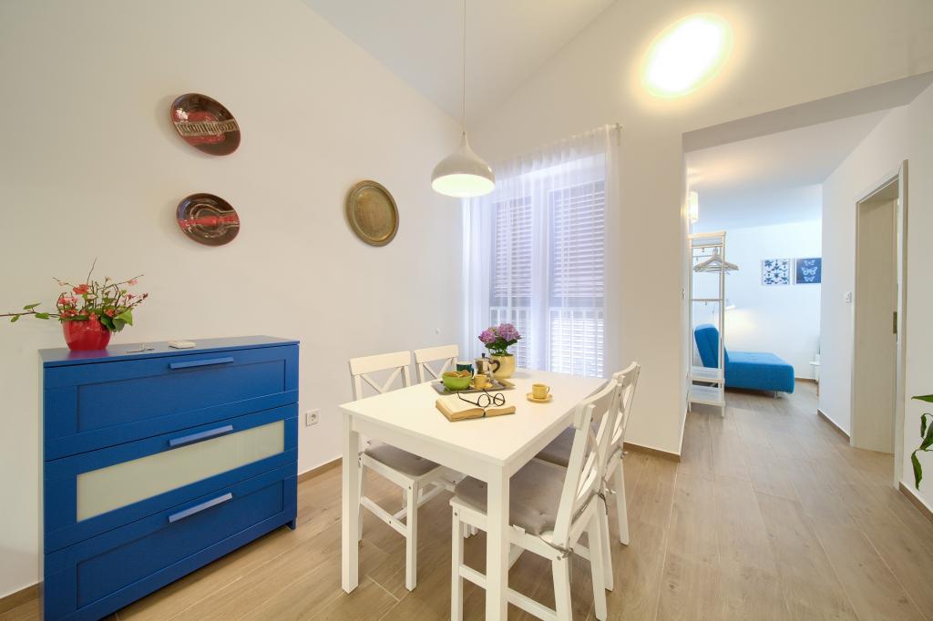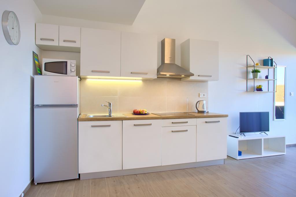 We stayed 12 days in the downstairs studio. Very spacious, clean, equipped with all comforts, tastefully furnished in a modern style. There is also a spacious veranda where you can have meals and hang out. Towels and sheets are available for changing. Free parking just outside the apartment. Enviable position, a stone's throw from the center and the sea. Katarina, her husband and mother are exquisite people, always helpful and kind, plus they speak Italian. We stayed with our 5 month old baby and we enjoyed it very much, thanks to the large spaces and the convenient location. I recommend Apartaments Meri for your holidays in Njivice