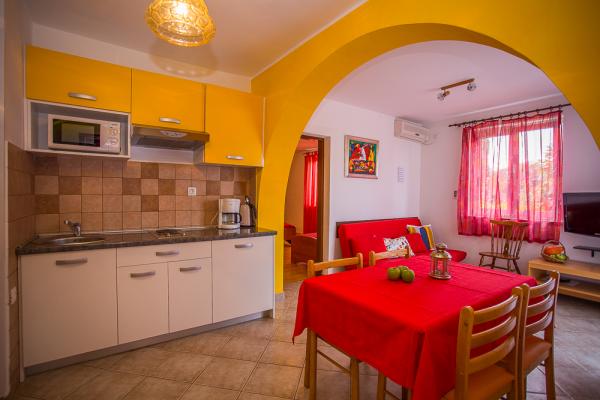 Welcome to Njivice - an oasis of sports activities and relaxation! Our apartments in Njivice offer the ideal combination of active vacation and enjoyment of nature. Enjoy various sports such as boating or scooter riding, as renting them is easily available. Our beautiful sandy beaches are just a few minutes walk from our facility, providing you with unforgettable moments in the sun and water. We are surrounded by a diverse gastronomic offer - from authentic restaurants to lively beach bars, we have something for every taste. Njivice is famous for its beaches that are almost always shaded by large trees, providing you with natural refreshment even on the hottest days. Don't wait, book your stay with us and experience the perfect vacation in Njivice. Your satisfaction is our priority!