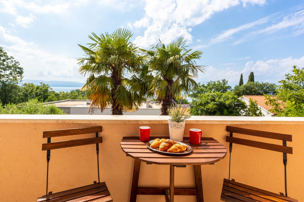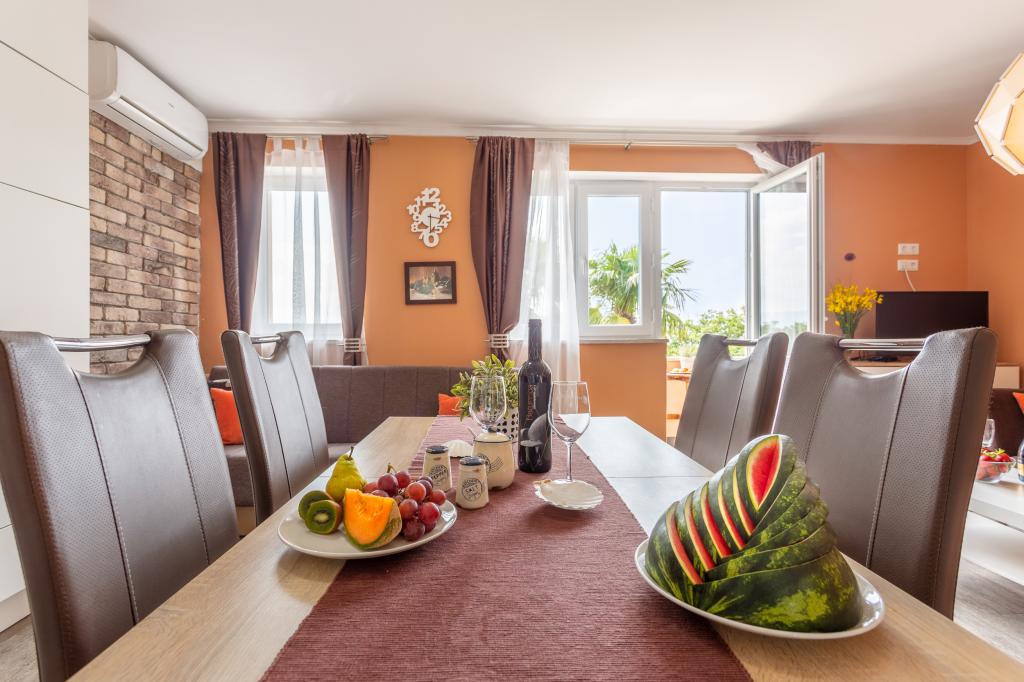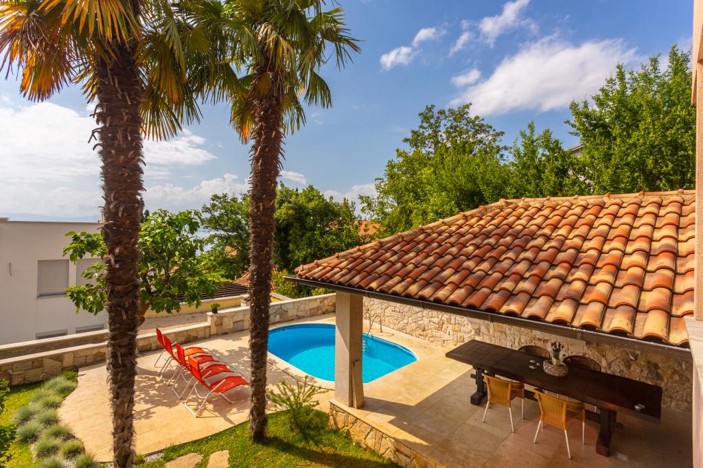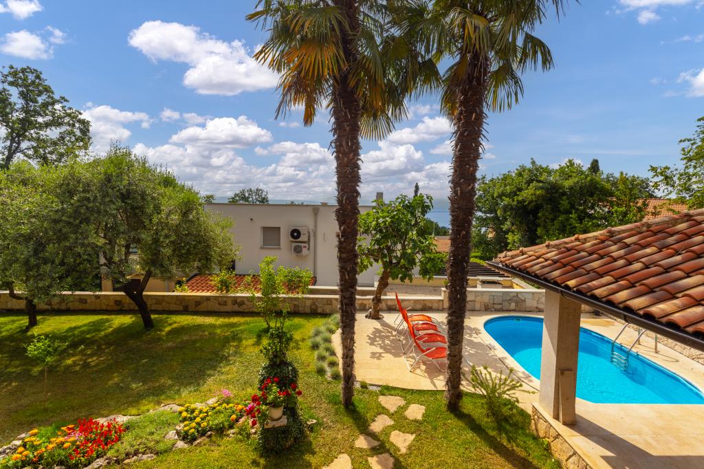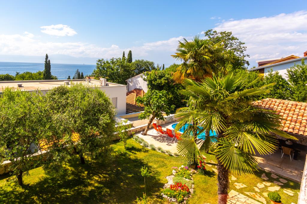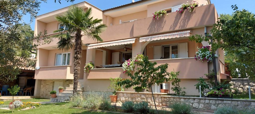 On one of the most beautiful islands of the northern Adriatic, on the magical island of Krk, the undiscovered beauty of nature awaits you. Sandy beaches, olive groves, caves, promenades, hiking and biking trails, authentic Moon Plateau, horseback riding... Lapped by the waves of the Adriatic in the shade of rich vegetation and with a view that takes everyone's breath away, Njivice is located. If your philosophy is that vacation is for hedonism, you are in the right place. Choose one of our two apartments and enjoy the peace and quiet of family accommodation. Close to a large beach, the sea is clean. Attractive location with lots of content for all ages (beach cocktail, horseback riding, zip line). Close to shops, center, restaurants. Secured parking, air conditioning, wifi. Sea view, swimming pool in the garden with palm trees and outdoor kitchen with grill. Choose one of the two apartments today and feel at home. We respect your privacy and are always at your service.
