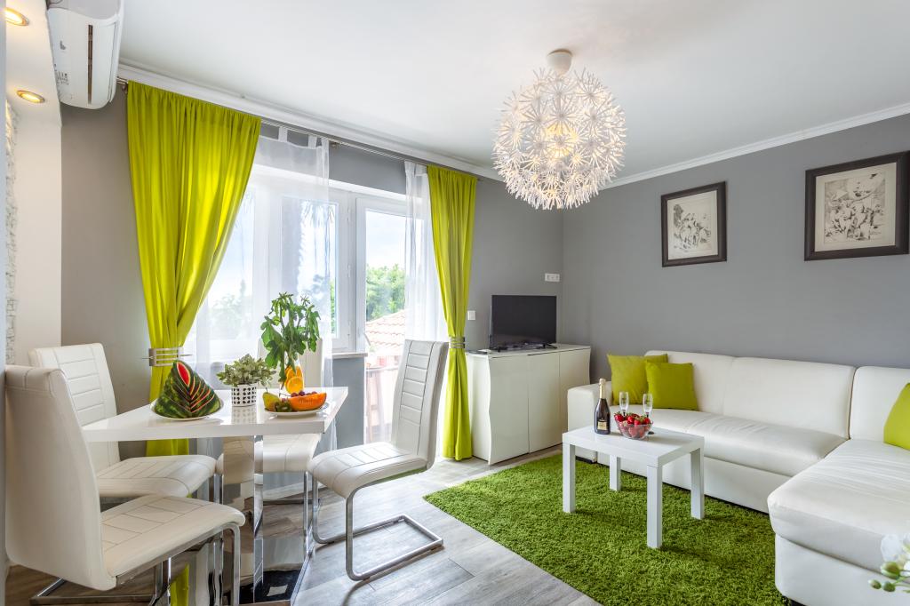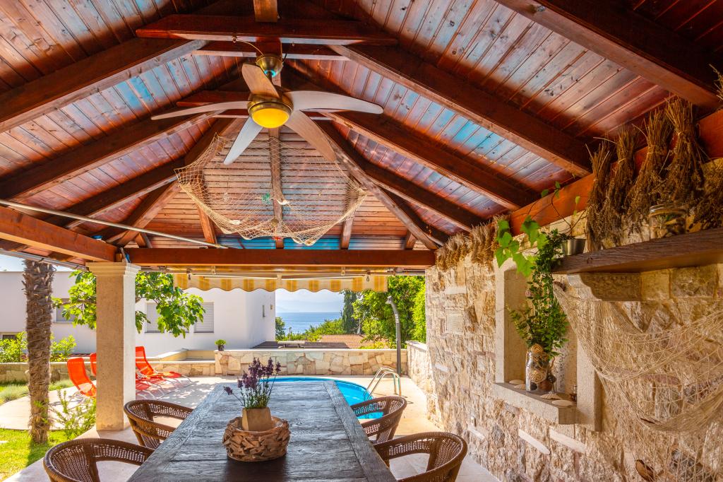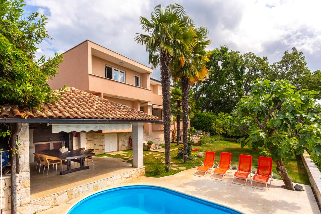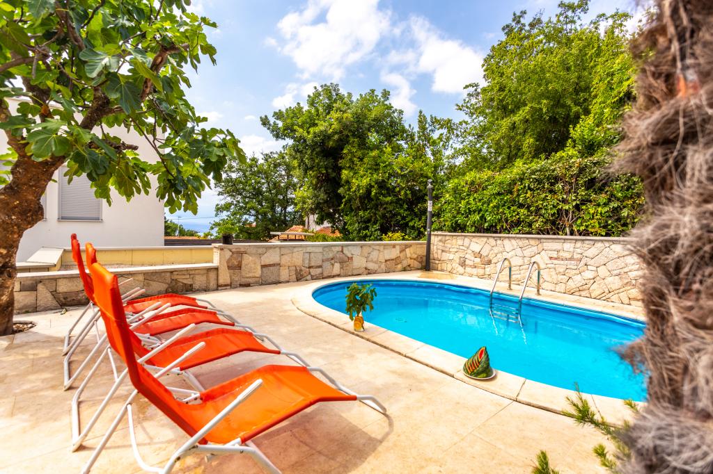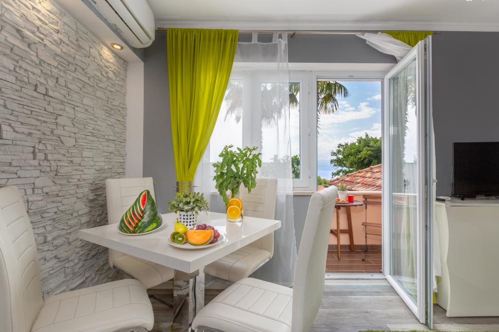 On one of the most beautiful islands of the northern Adriatic, on the magical island of Krk, the undiscovered beauty of nature awaits you. Sandy beaches, olive groves, caves, promenades, hiking and biking trails, authentic Moon Plateau, horseback riding... Lapped by the waves of the Adriatic in the shade of rich vegetation and with a view that takes everyone's breath away, Njivice is located. If your philosophy is that vacation is for hedonism, you are in the right place. Choose one of our two apartments and enjoy the peace and quiet of family accommodation. Close to a large beach, the sea is clean. Attractive location with lots of content for all ages (beach cocktail, horseback riding, zip line). Close to shops, center, restaurants. Secured parking, air conditioning, wifi. Sea view, swimming pool in the garden with palm trees and outdoor kitchen with grill. Choose one of the two apartments today and feel at home. We respect your privacy and are always at your service.