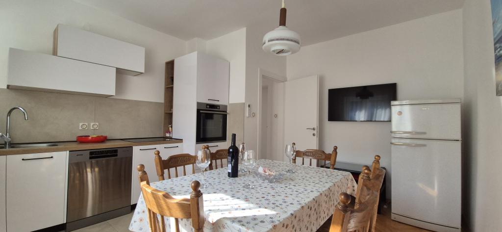 Residential tax is included in price.A great place to relax, the apartment is clean and has everything you need to function, the owner, Darko, is nice and friendly, he takes care of his guests, even if there is a language barrier. You go downhill to the beach, but unfortunately the return is uphill. It's a pity that the parking lot next to the apartment doesn't have a roof, because the car is like a frying pan, and it would also be nice to have security on the stairs (a gate) so that children or animals can't climb down (or fall) without adult supervision (but that's a detail). . There are no additional fees for pets, which makes the apartment even more attractive. Overall, I highly recommend this apartment.