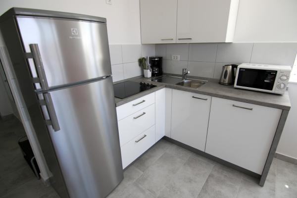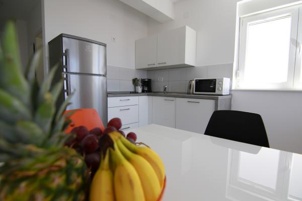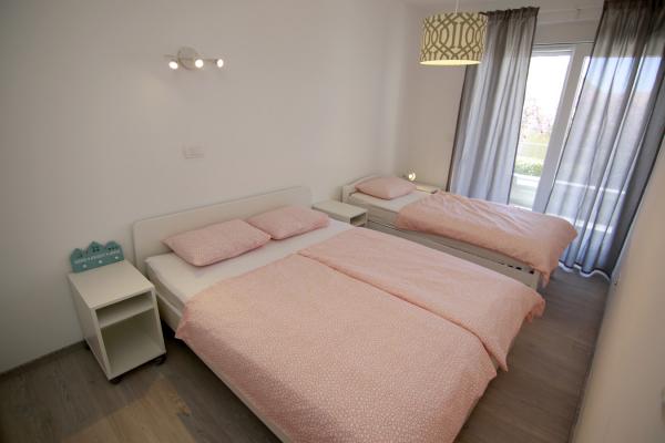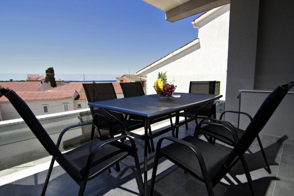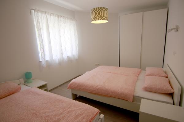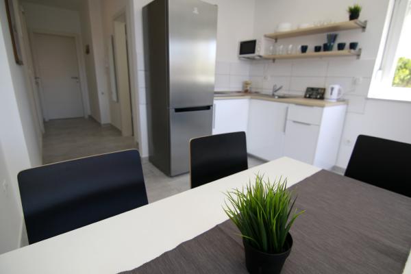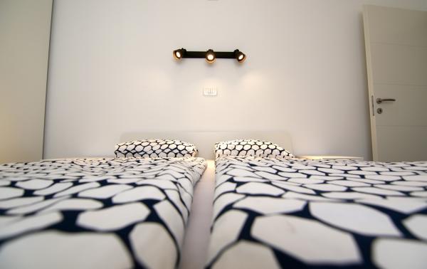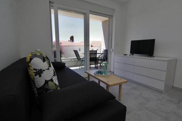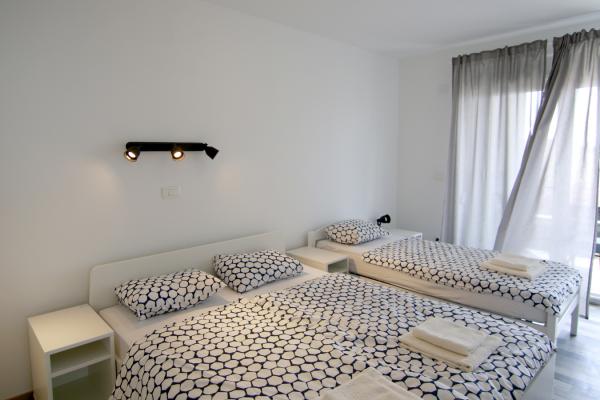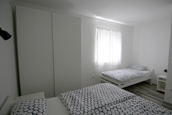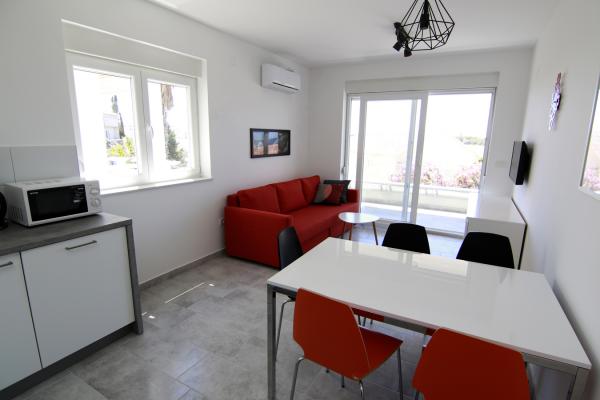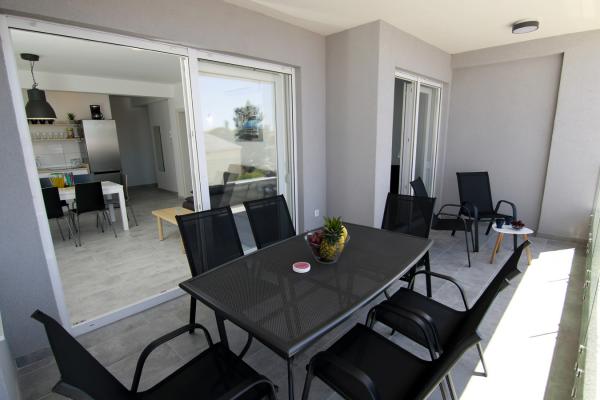 Apartments Luna are located near the center of Novalja, just a few minutes walk to the center, shops, restaurants and all other facilities, but also to the sea. It is a brand new building and contains 4 modern apartments, on each floor an apartment for 5 and 8 people. All apartments are equipped with air conditioning, dishwashers, wi-fi, TV / SAT, walk in showers and a large terrace. Large apartments for 8 people consist of two separate rooms with 3 beds, a bed for 2 people in the living room and have 2 bathrooms. Smaller apartments consist of one separate room with 3 beds and a bed for 2 people in the living room. The apartments on the upper floor have a sea view. All apartments have secured parking spaces. The owners are vaccinated against Covid - 19.