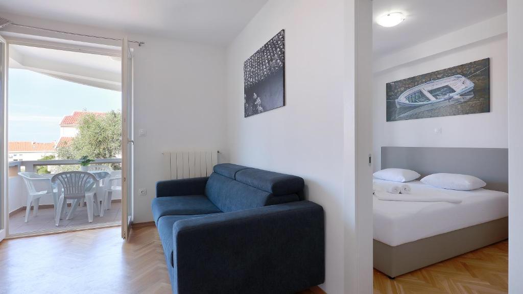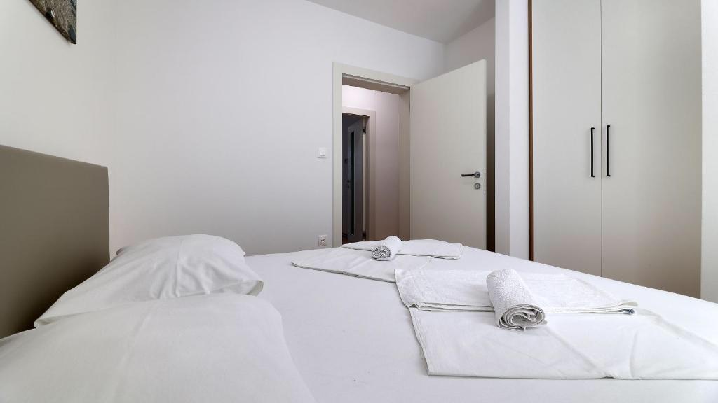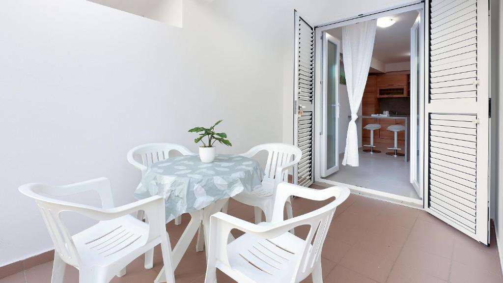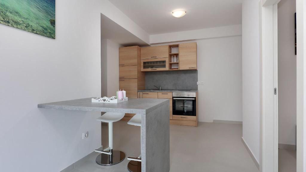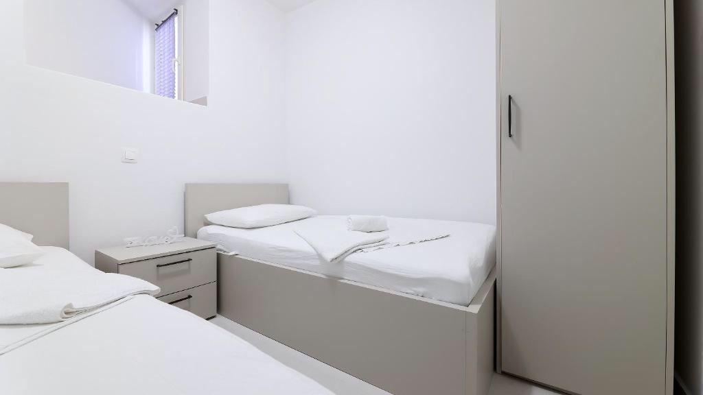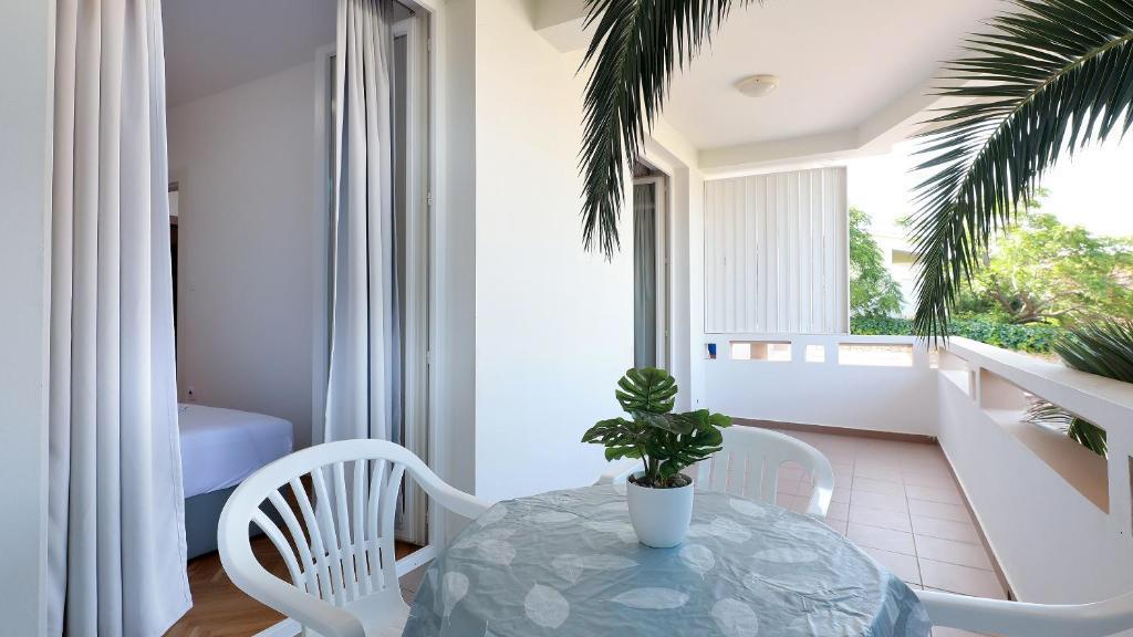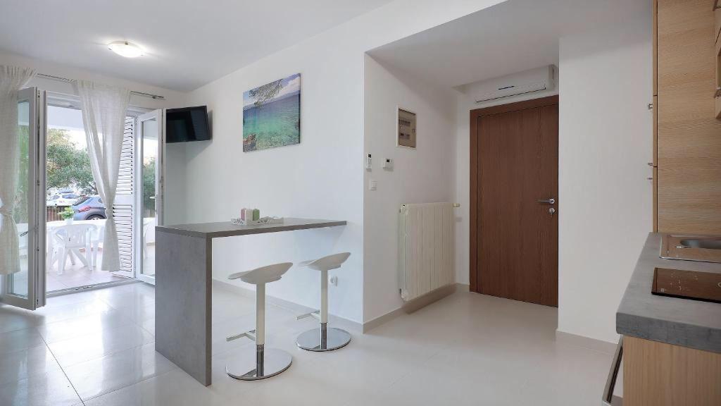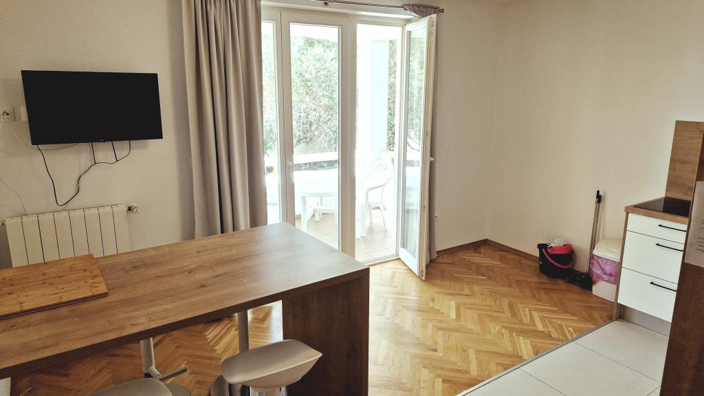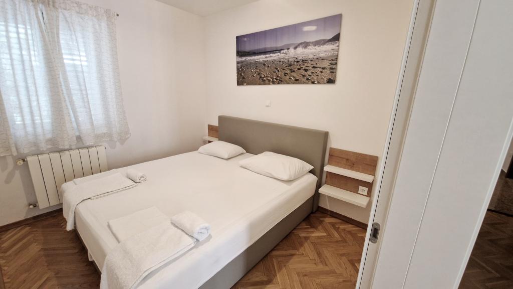 Dear guests, welcome to the website where we present the offer of accommodation in our apartments. Apartments Optima are modernly equipped apartments, completely renovated in 2021. The apartment rooms have hotel-standard beds, and the kitchens are fully equipped with complete kitchen utensils. The apartments have secured parking, Wi-Fi, TV, air conditioning, and the standard equipment includes towels and bed linen. The apartments are located a 5-minute walk from the center and the beach. There are shops and restaurants near the building, and the apartments are 500 m from the center of Novalja.