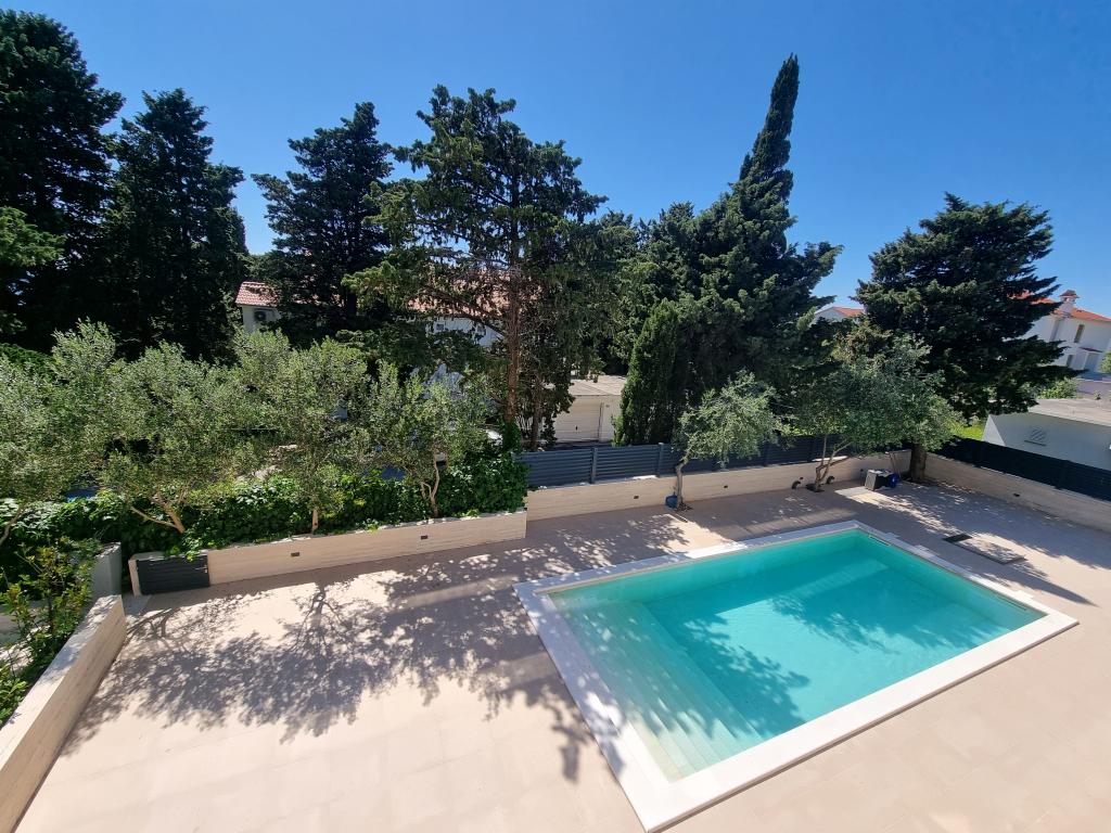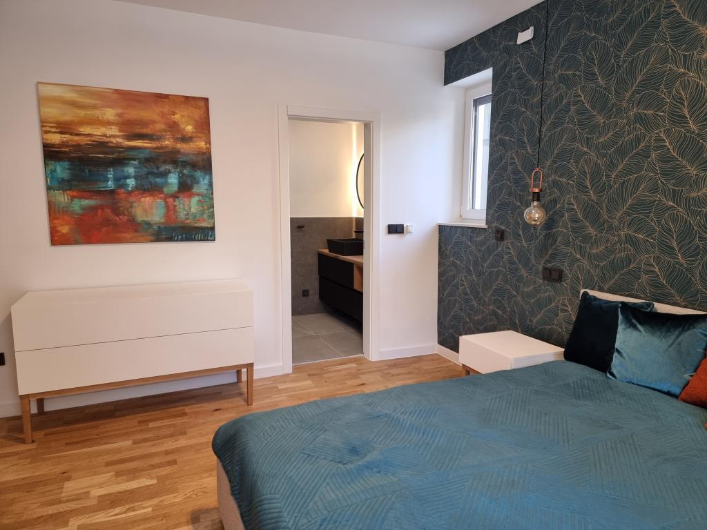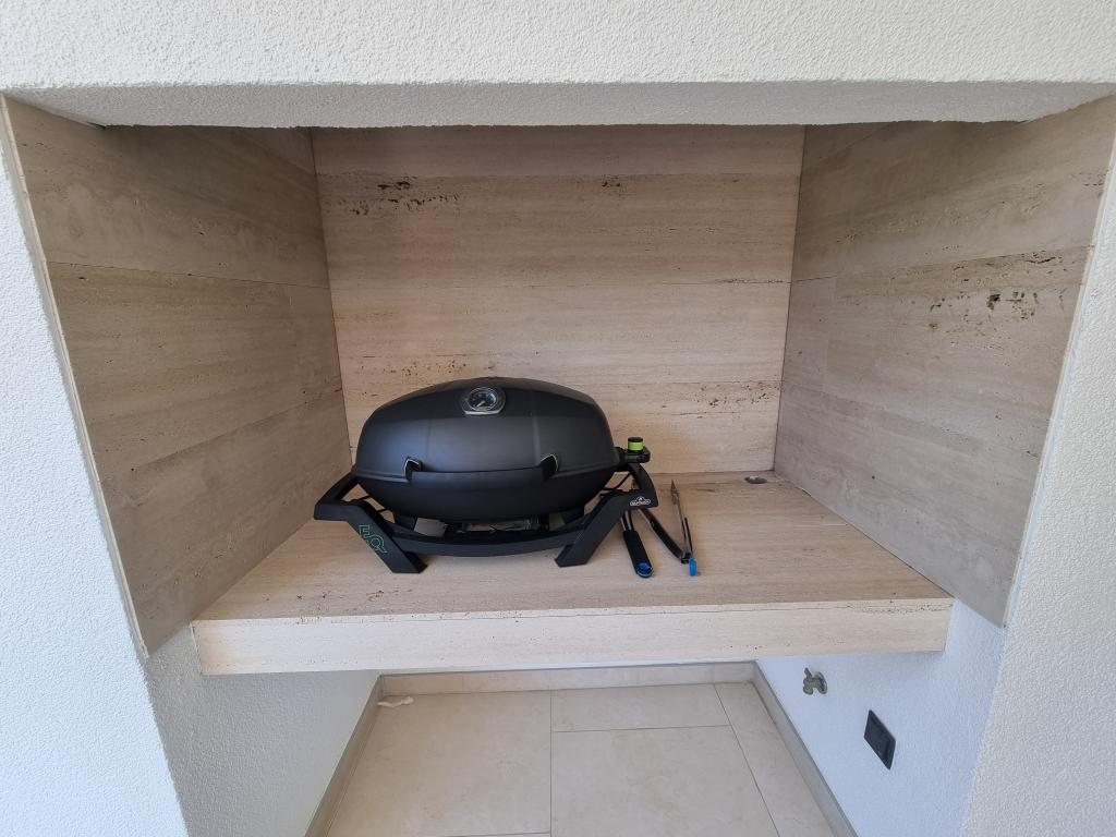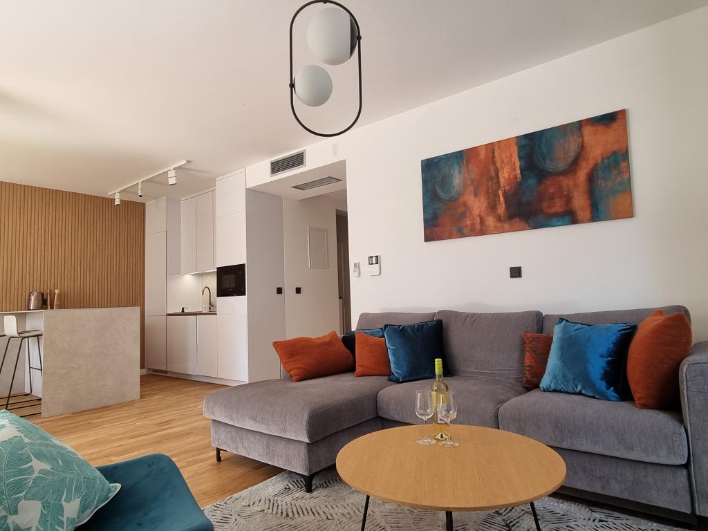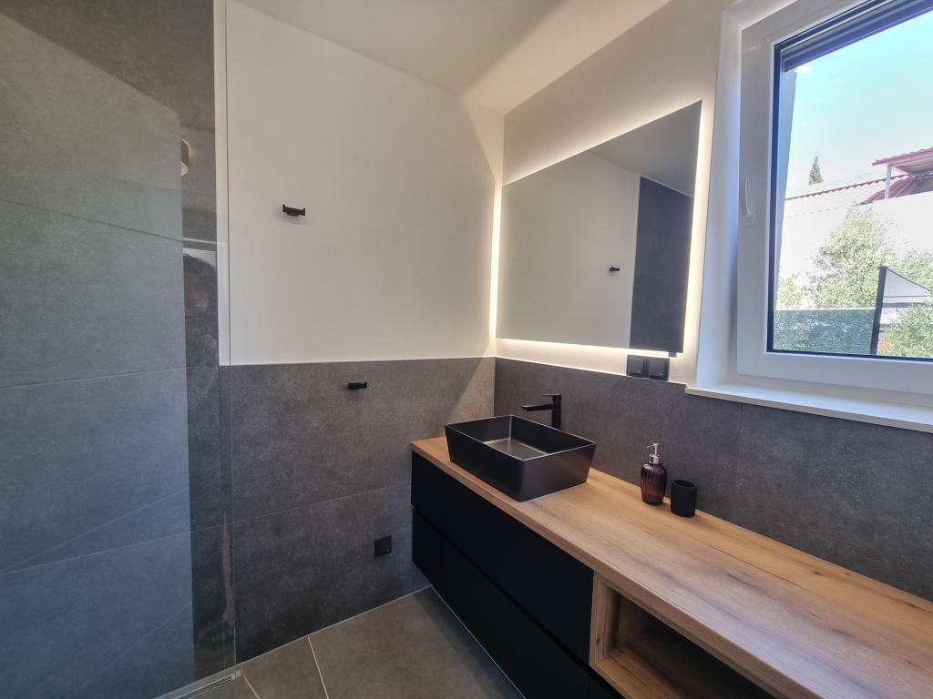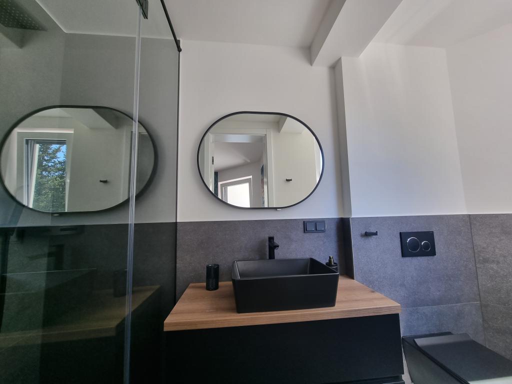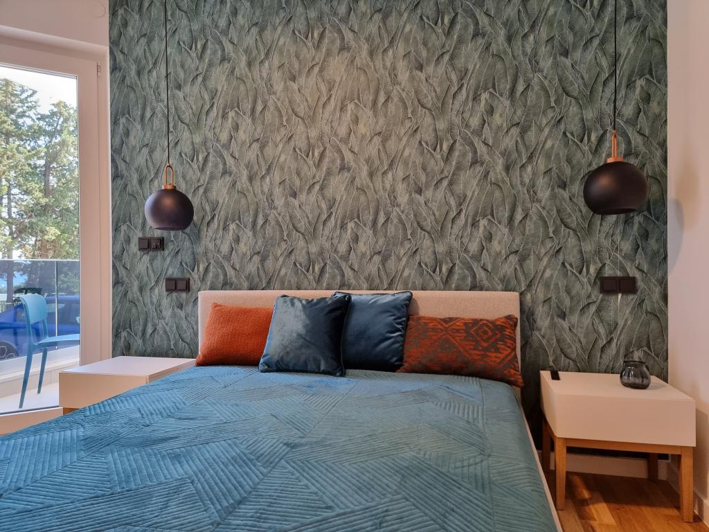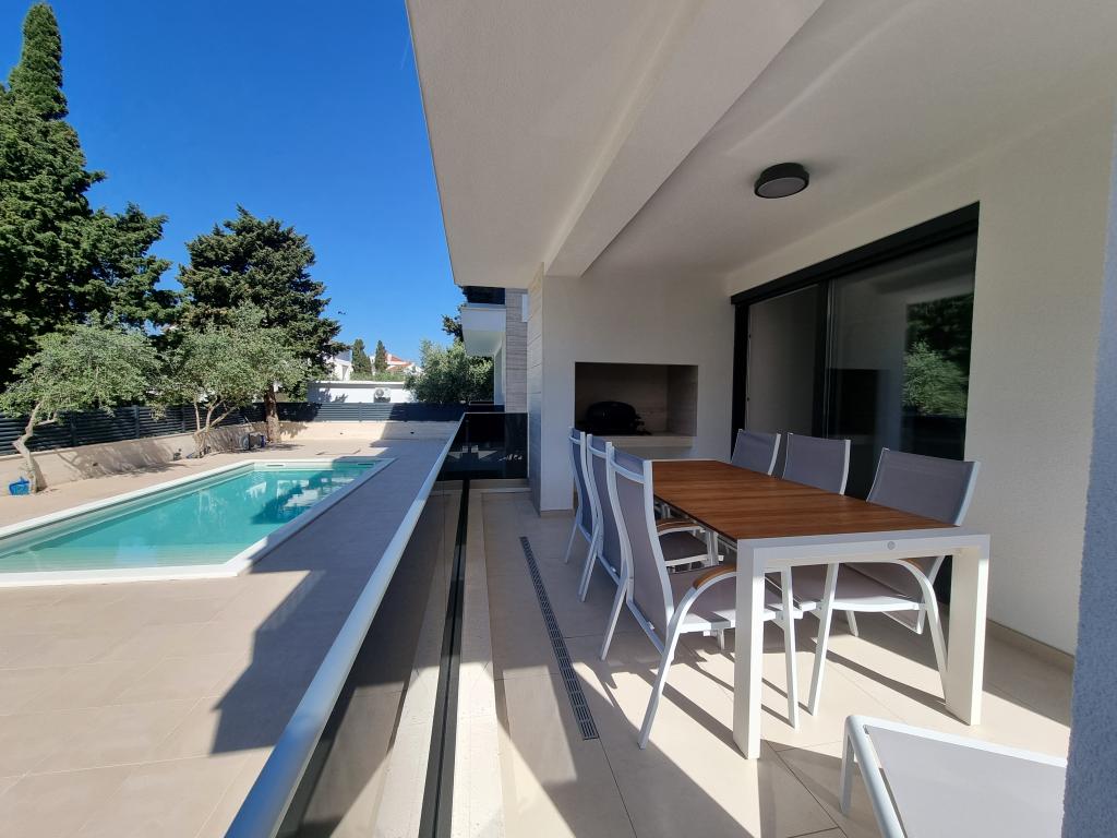 2 luxury apartments of 100 m2 each are located on the ground and first floor of a modern building and have 2 bedrooms with balconies, a large living room with a sofa bed and with a fully equipped kitchen ( the kitchens have coffee maker, microwave, dishwasher, hob and refrigerator ), 3 bathrooms in each apartment and a large terrace with table and barbecue.They are also equipped with a washing machine and iron with ironing board. There is a communal swimming pool with a small garden and parking available by the building.They are located in a quiet part of Novalja, but only a 2-minute walk from the beach and promenade. It is a 20-minute walk to the center of the town, and 10 minutes to the nearest store and restaurant. The apartments are designed for demanding guests - they are beautiful and comfortable, premium type, equipped with modern appliances and high quality furniture, and the decorative elements are handmade.