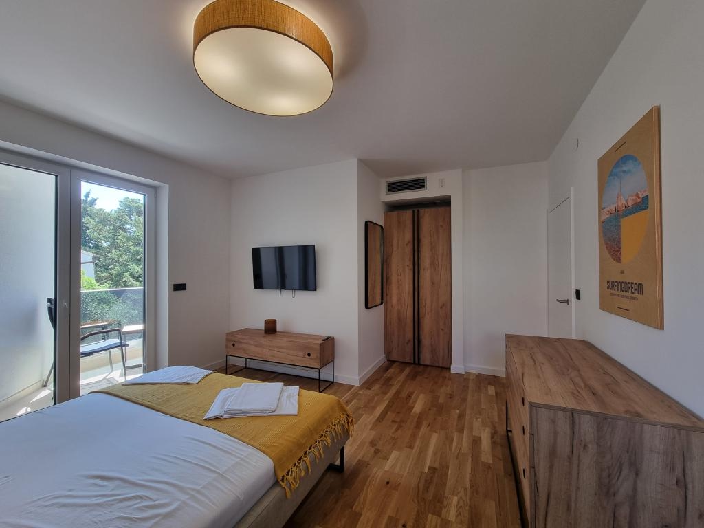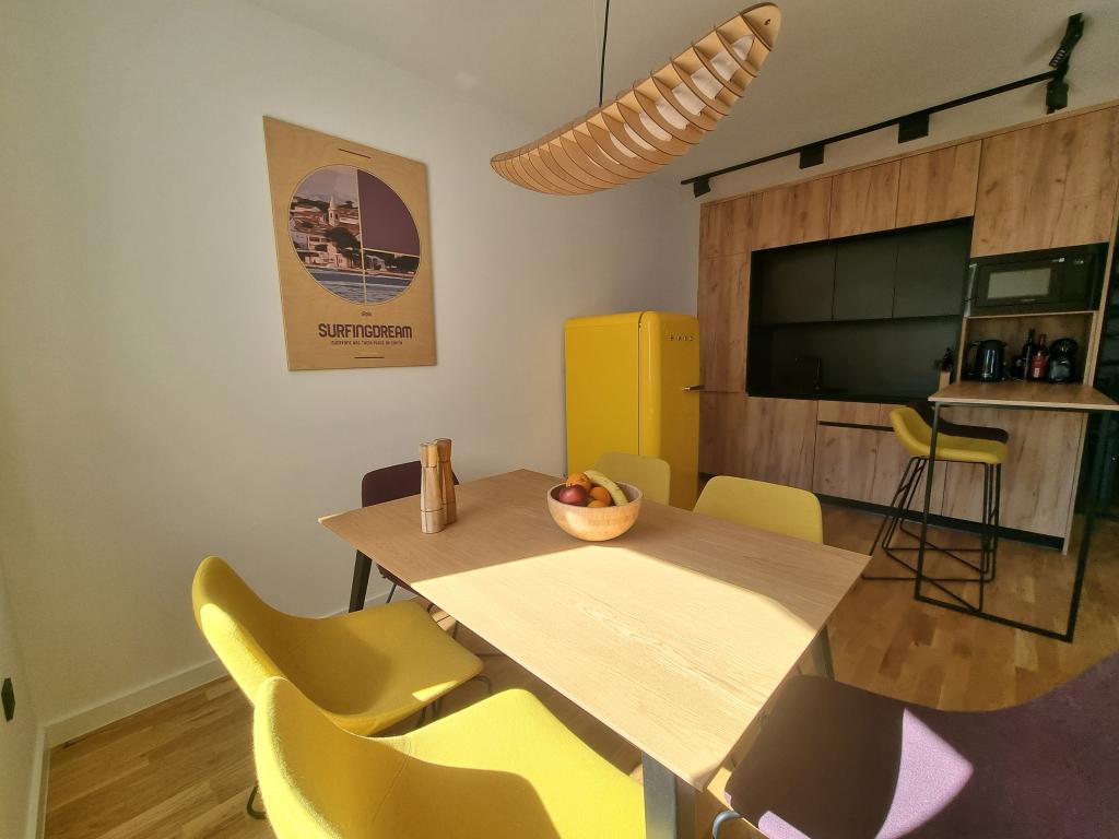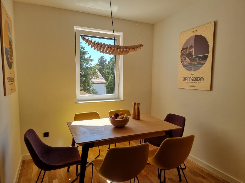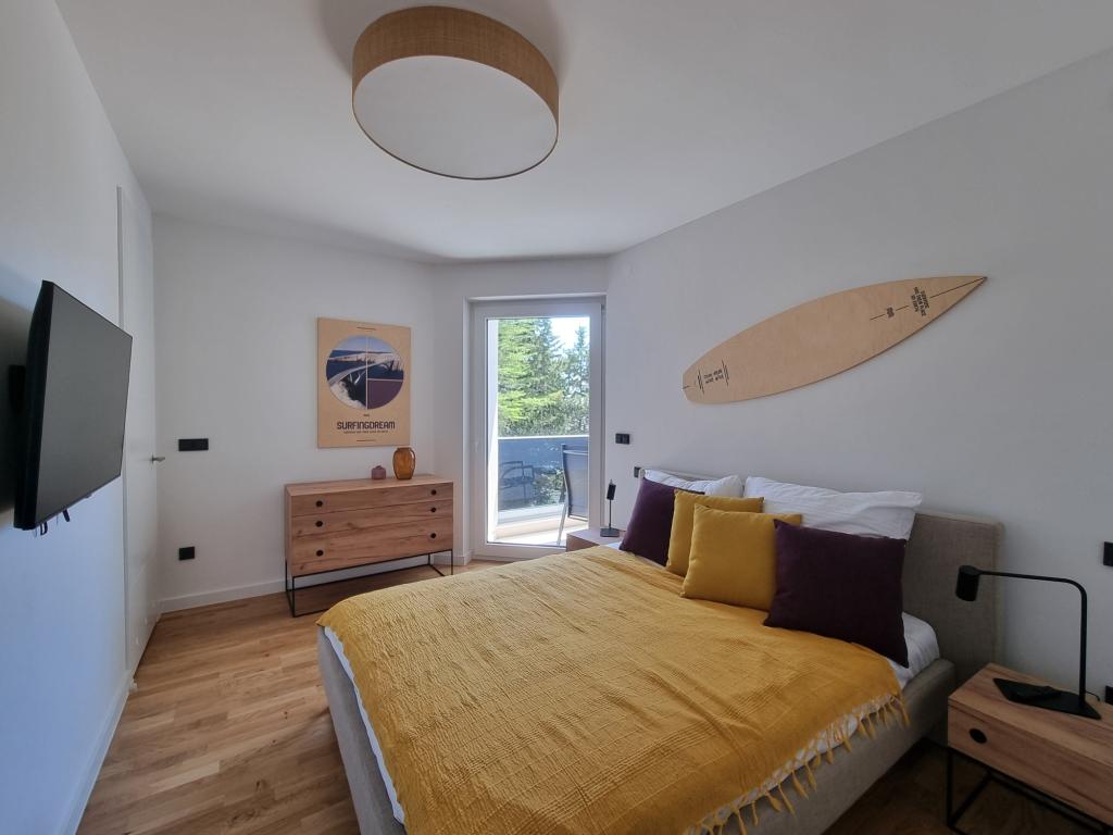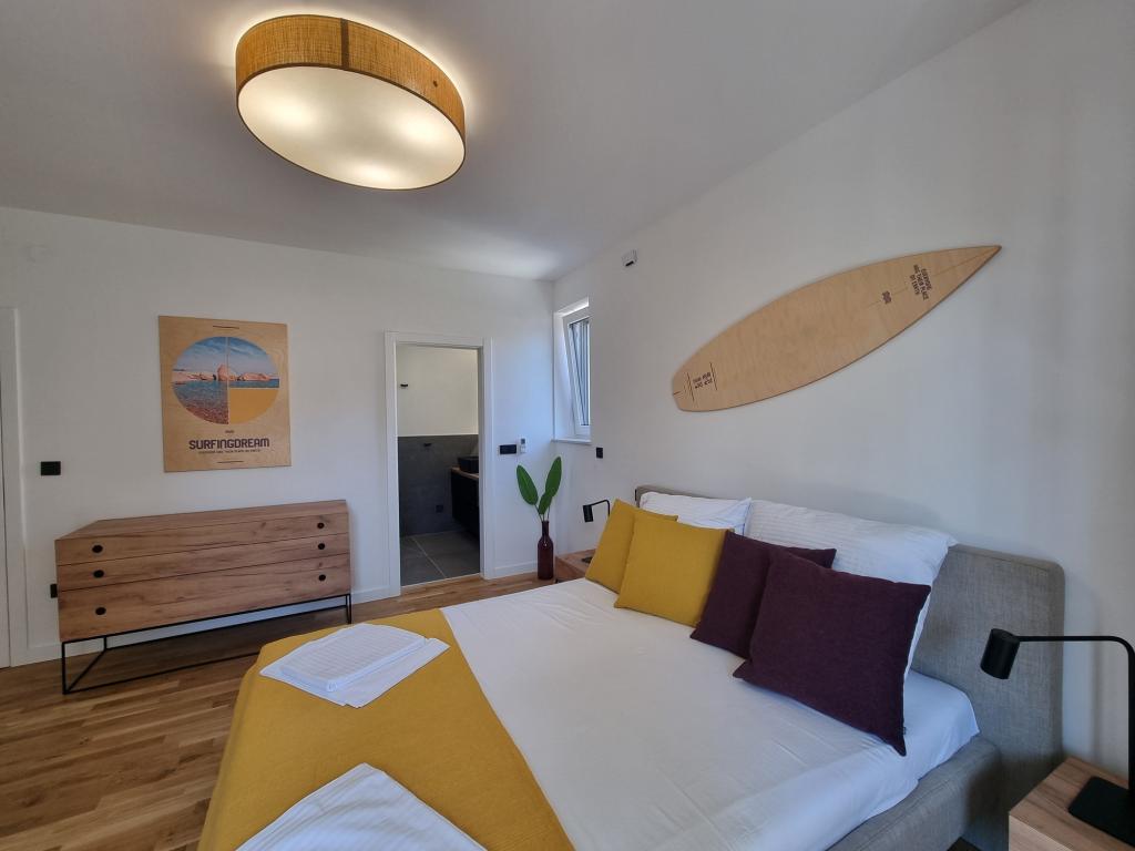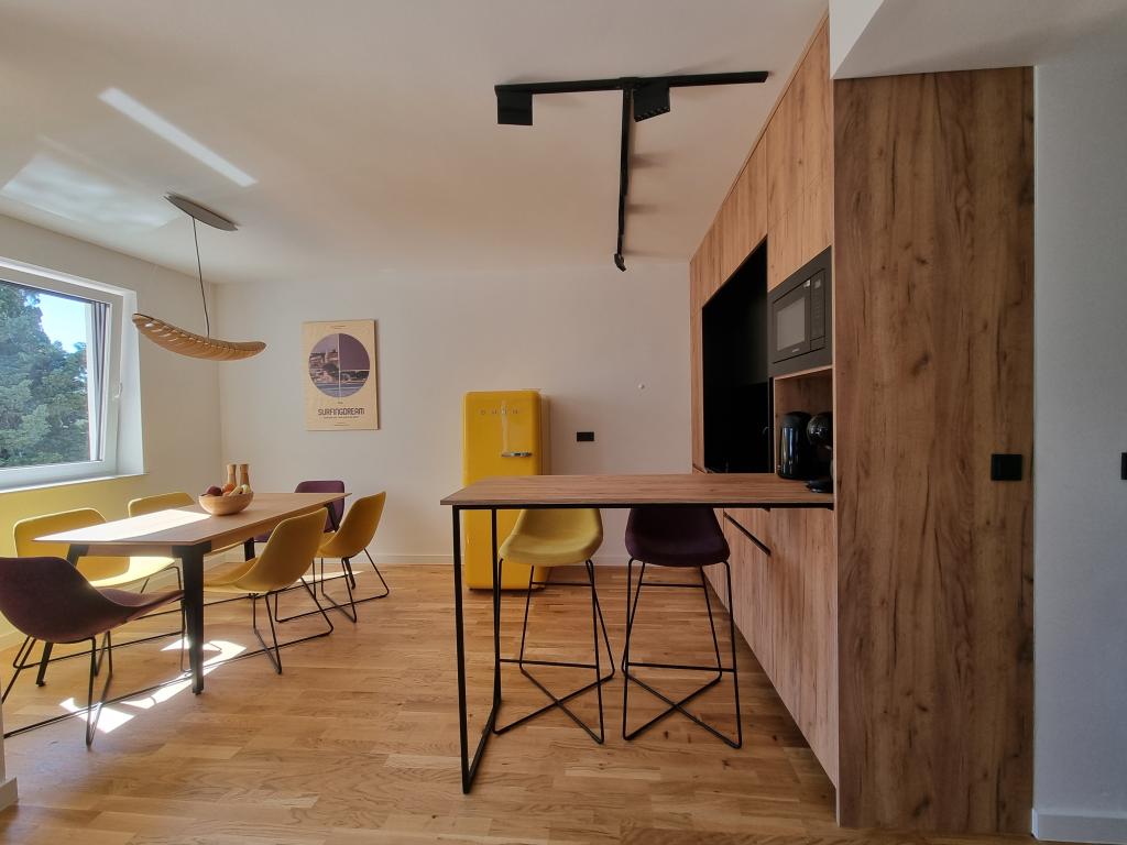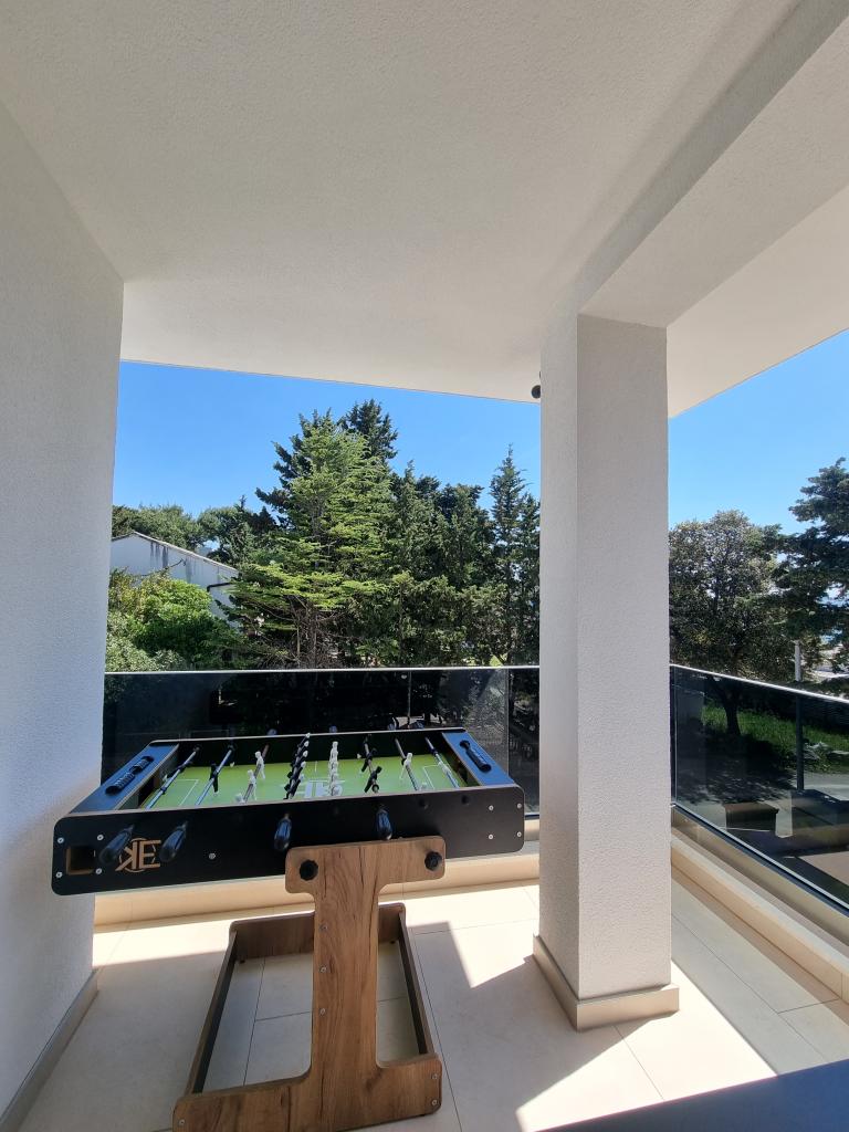 There are loungers by the pool and on the terrace, a SUP for playing in the sea, a PS5 game console in the Summer Color apartment and a foosball table in the SurfingDream apartment. Summer Color apartmant can accomodate up to 6 people, SurfinfDream apartment up to 7 people.