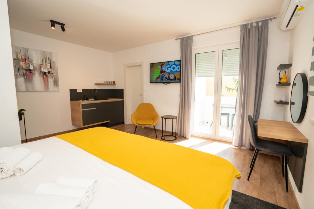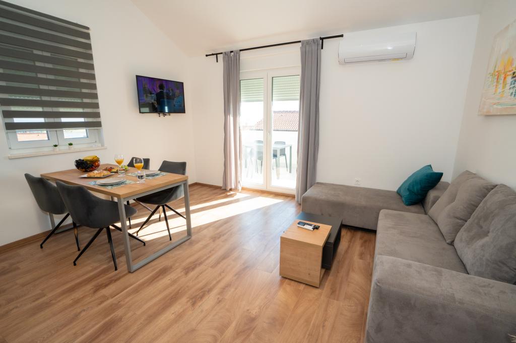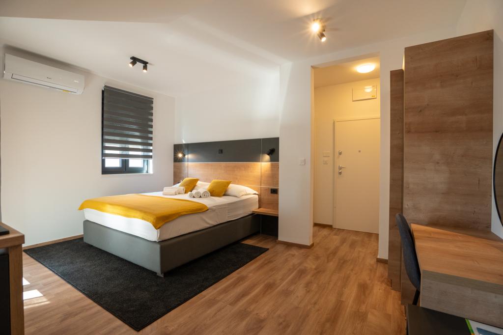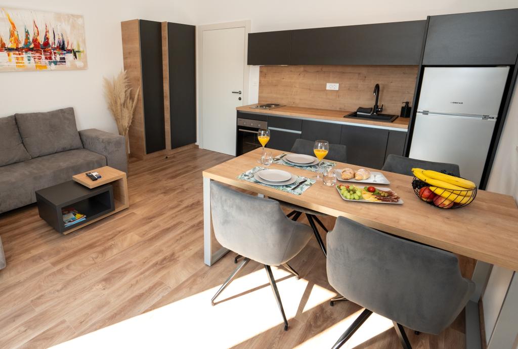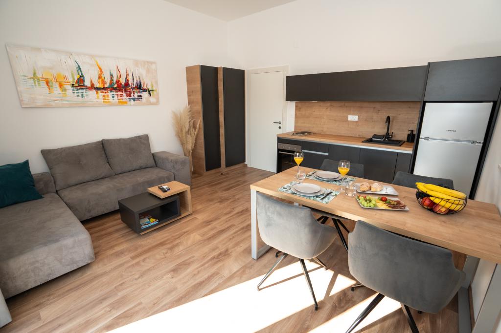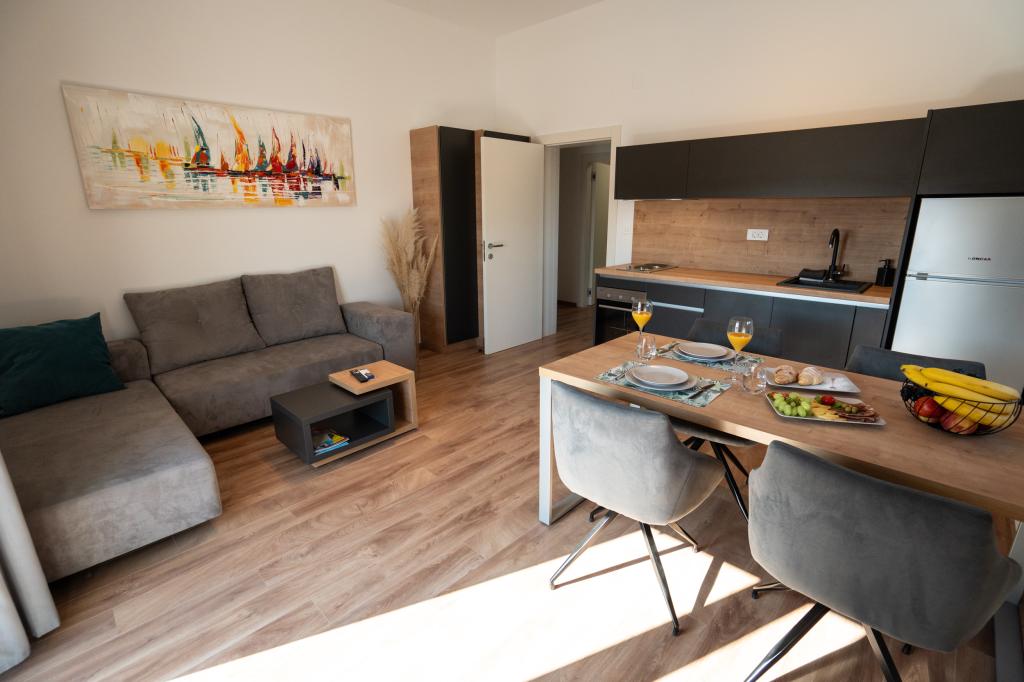 Enjoy the comfort and elegance of our modernly equipped rooms and high-class apartments. All accommodation facilities are categorized with 4 stars and equipped according to hotel standards with carefully selected furniture and quality equipment. Ideal for business trips, family vacations or summer relaxation - your perfect stay in Novalja starts here! I 4 stars - confirmation of quality I Modern equipment and design I One-bedroom apartments I Two extra beds in the spacious living room I Free Wi-Fi I Private parking Book now and experience the ultimate comfort! NOTE: Extra beds in the living room can only be used by children under 12 years of age.