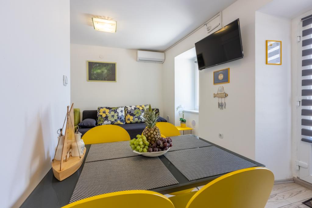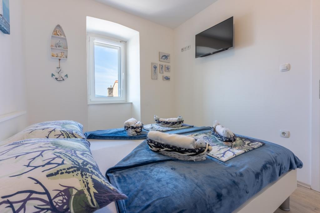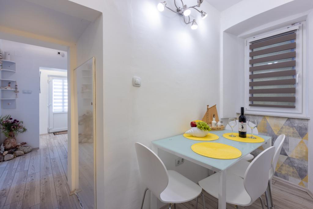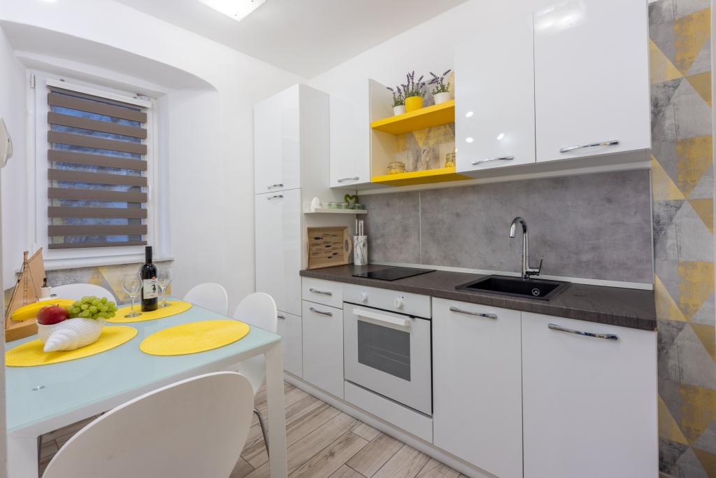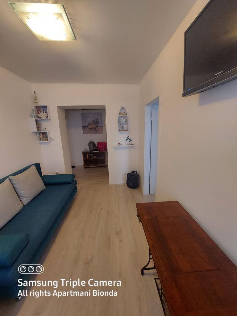Apartment Bionda has an area of approximately 50m2 and consists of a kitchen, bathroom, living room and bedroom. It is designed for a maximum of 4 people, a double bed is located in the bedroom, and in the living room there is a sofa that extends into a bed measuring 160x200cm. The apartment is located in the city center, in its old town, not busy. You are separated from the sea by only 20 steps, and from the central square only about 50 m. The apartment is air conditioned and fully equipped for everyday needs. (LED TV in the living room and in the bedroom, kitchen equipped with oven, hob, refrigerator with freezer, umbrella available, bed linen is changed on a weekly basis) During your stay with us you are provided with a parking ticket in a public parking lot.