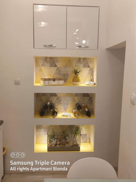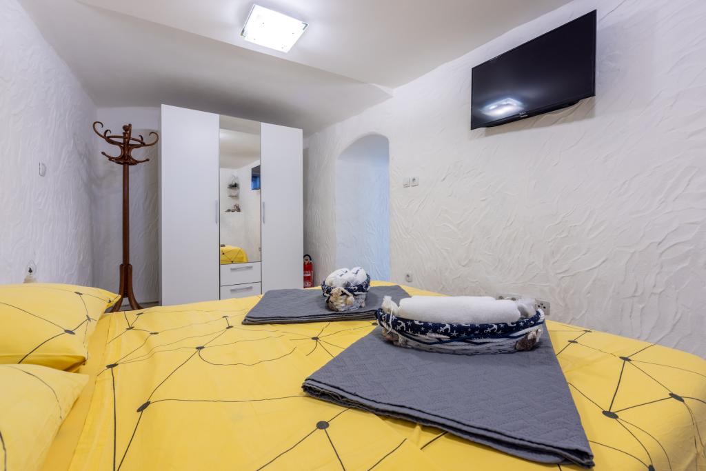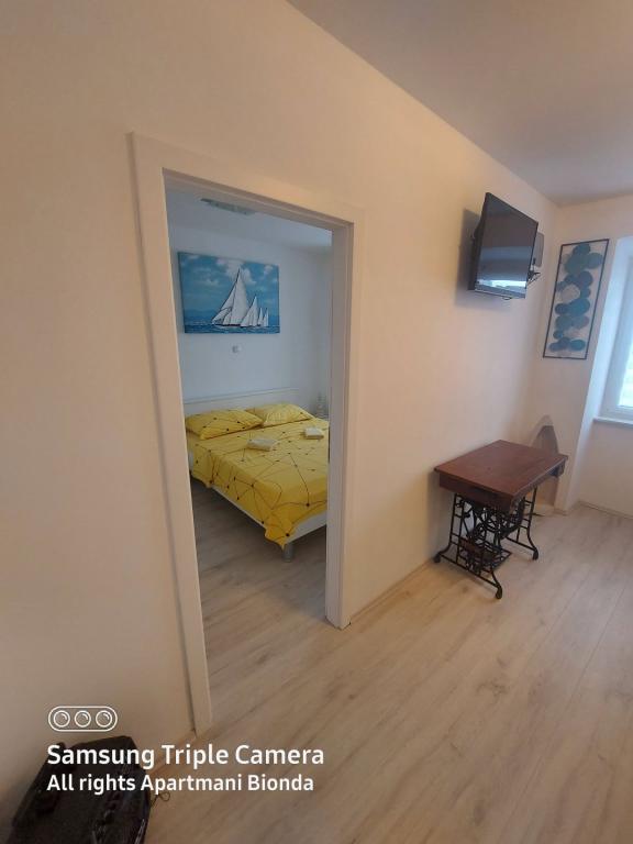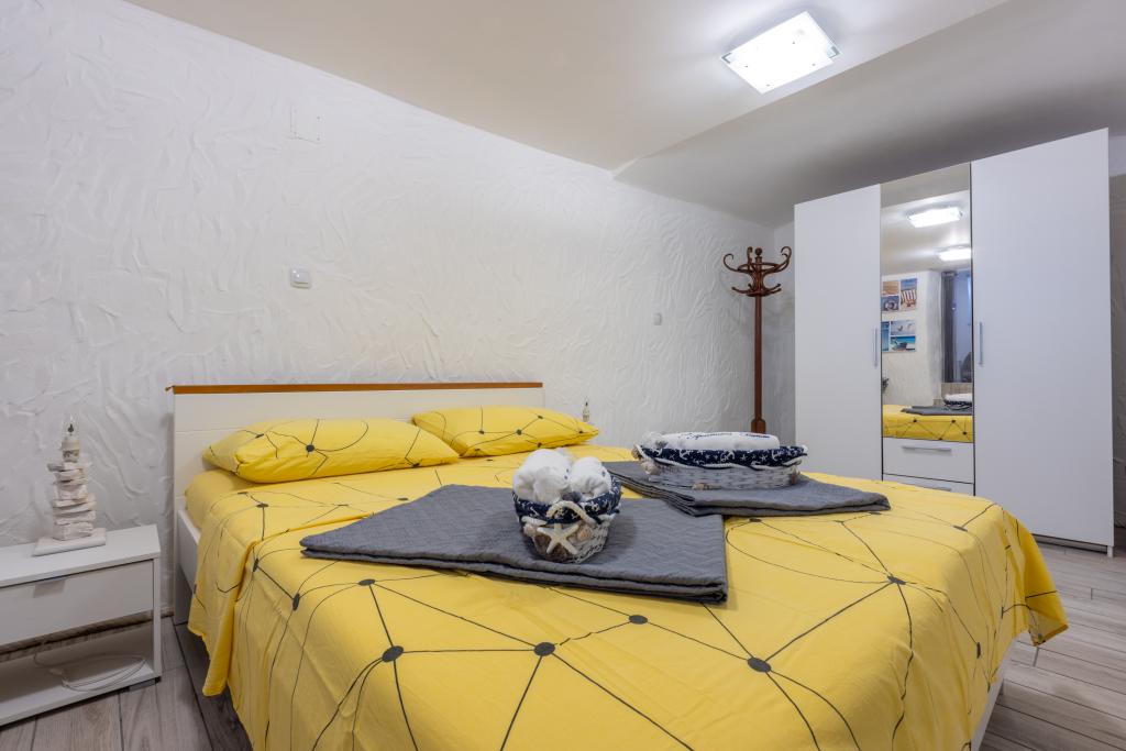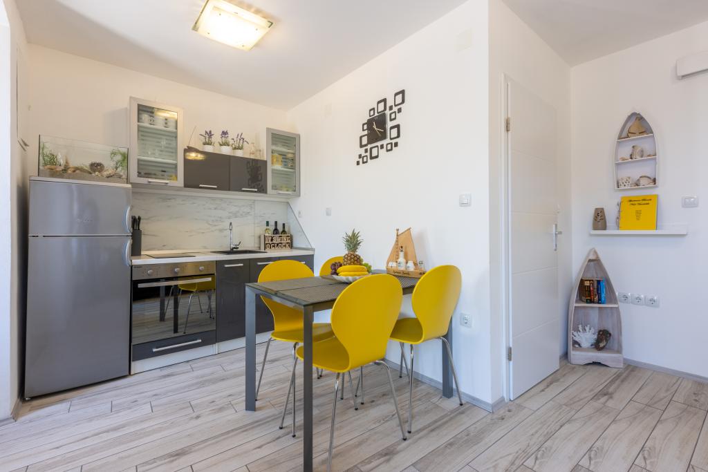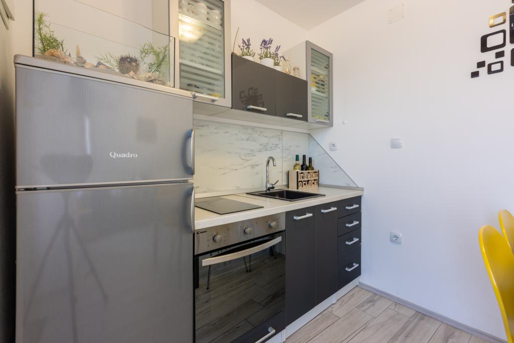 Apartment Bionda has an area of approximately 50m2 and consists of a kitchen, bathroom, living room and bedroom. It is designed for a maximum of 4 people, a double bed is located in the bedroom, and in the living room there is a sofa that extends into a bed measuring 160x200cm. The apartment is located in the city center, in its old town, not busy. You are separated from the sea by only 20 steps, and from the central square only about 50 m. The apartment is air conditioned and fully equipped for everyday needs. (LED TV in the living room and in the bedroom, kitchen equipped with oven, hob, refrigerator with freezer, umbrella available, bed linen is changed on a weekly basis) During your stay with us you are provided with a parking ticket in a public parking lot.
