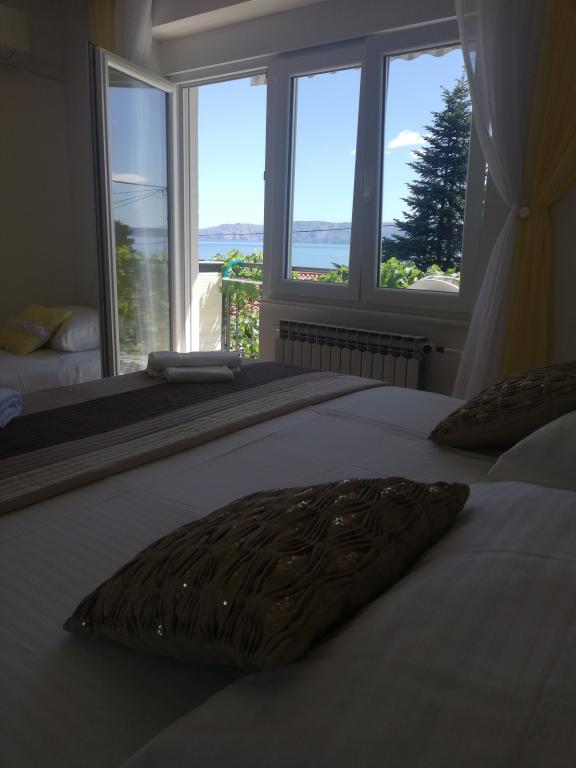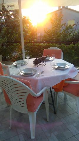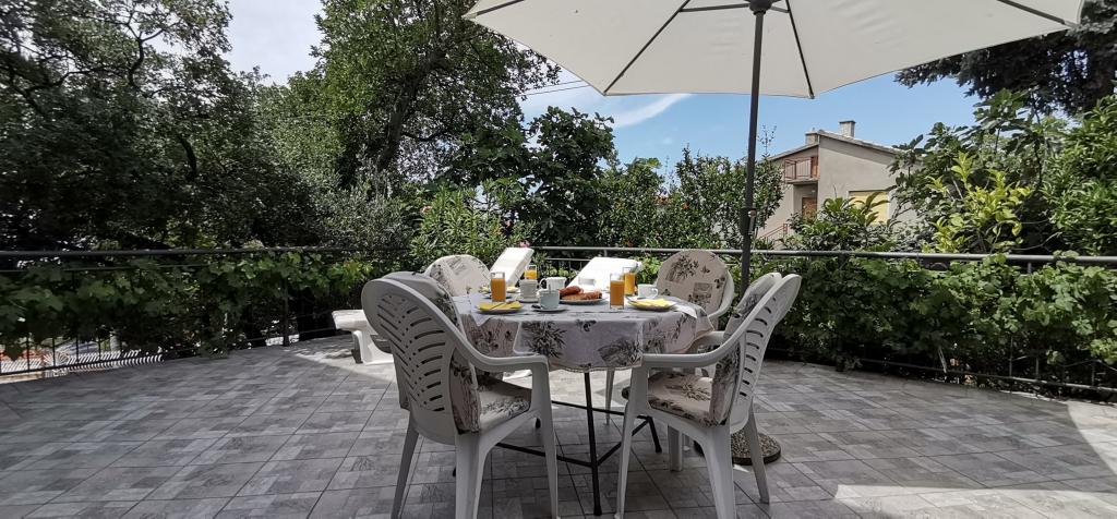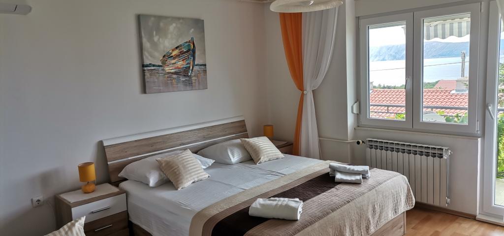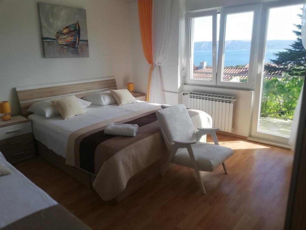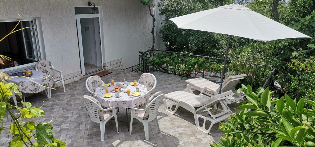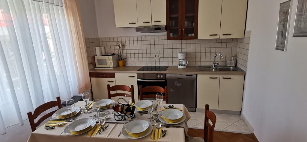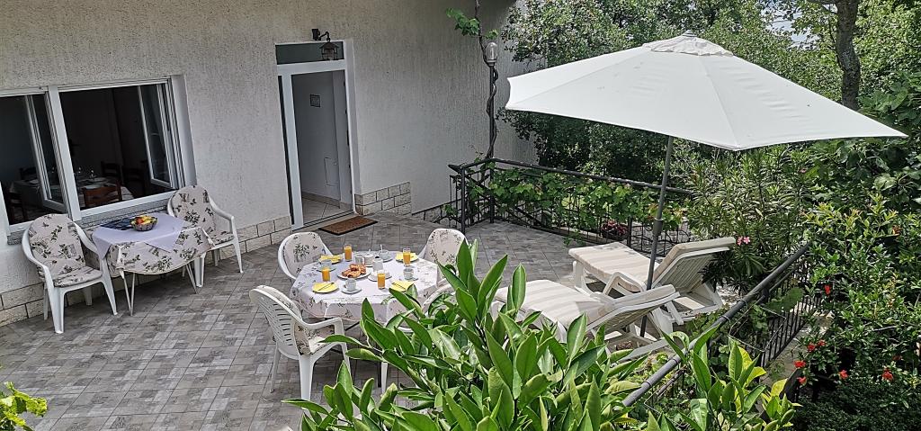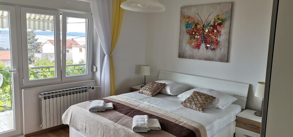 Fully and modernly equipped apartment in a quiet part of Novi Vinodolski, 5 minutes walk from the city center and 5 minutes walk from the main beach. House with garden, garden, large terrace and two large balcony with sea view. The apartment has two free parking spaces. In the yard of the apartment guests have at their disposal a barbecue. It is air conditioned and each room has satellite TV.