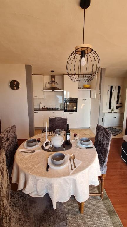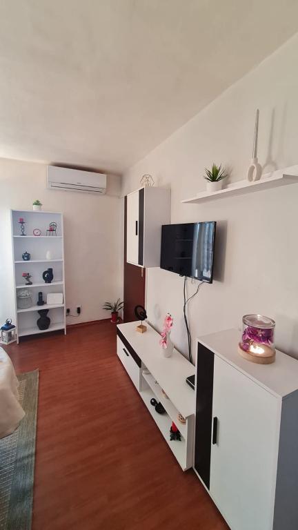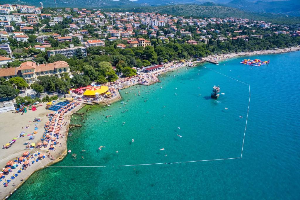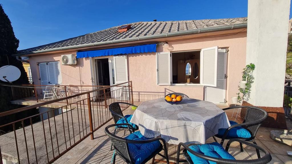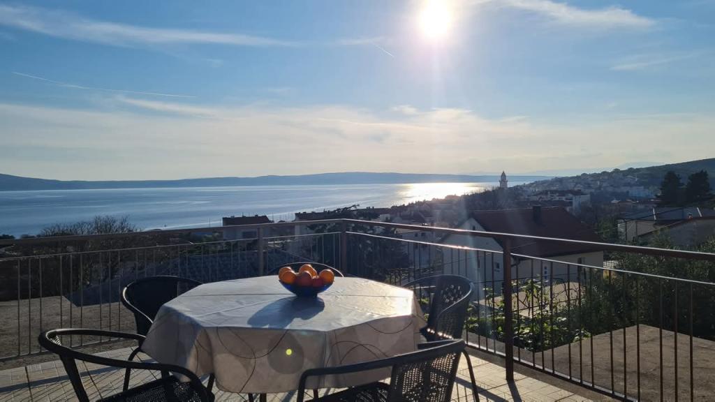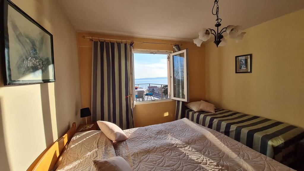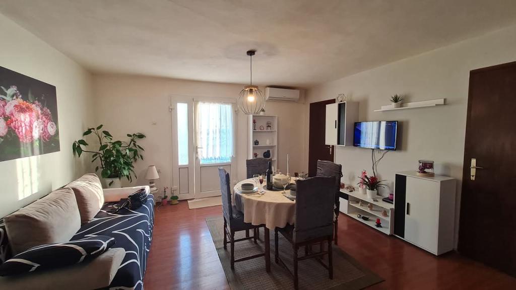 Equipped apartment with two large bedrooms, kitchen, living room, bathroom and a beautiful large terrace with a view of the sea and the city center. Equipped with all household appliances (washing machine, dishwasher, microwave, toaster, oven, kettle, electric grill). Parking, air conditioning and WiFi are included in the price. The apartment is located 5 minutes from the city center and 10 minutes from the main beach.