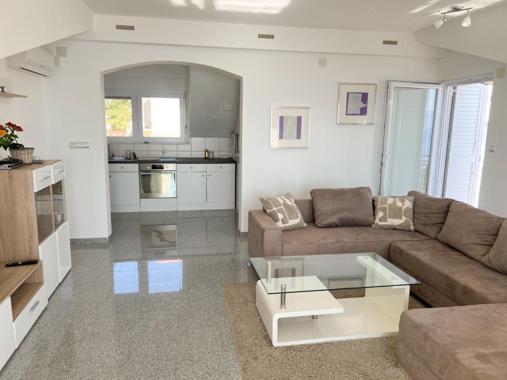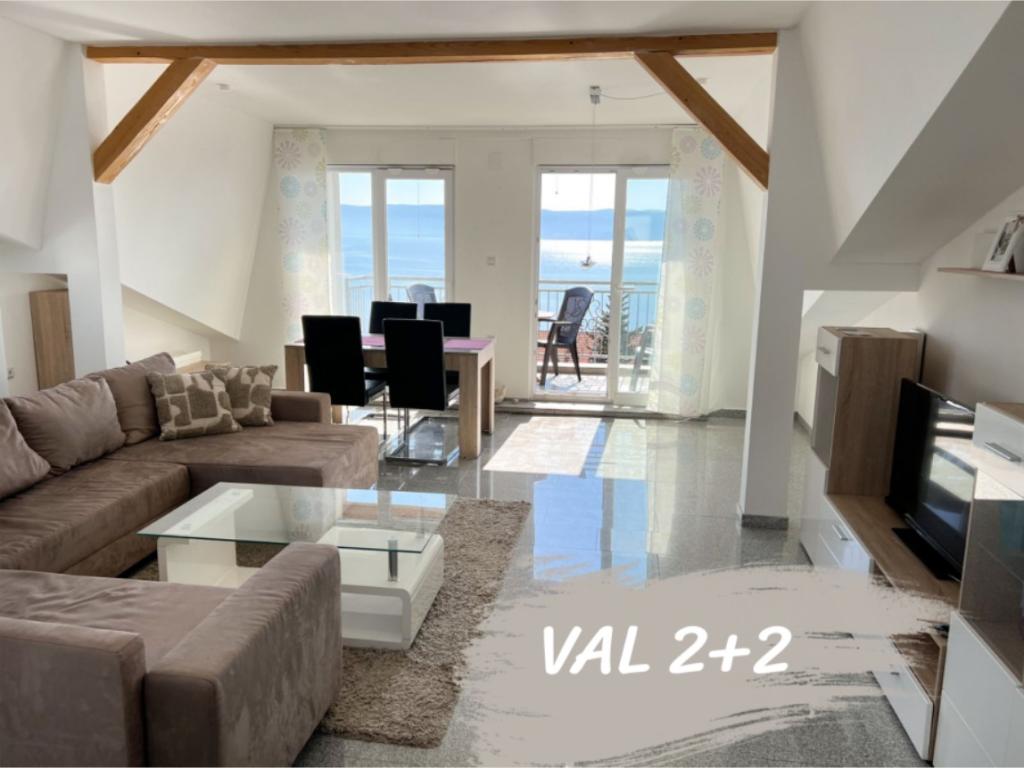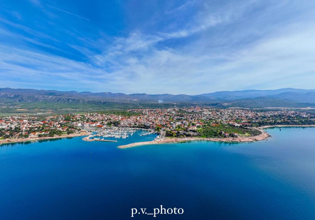 Apartment VAL 2+2 is located in the attic of a family house. It has a panoramic view of the sea and the island of Krk. The beach is 300m away. Parking is provided in front of the house outside the yard. Pets are welcome and their stay is free of charge.