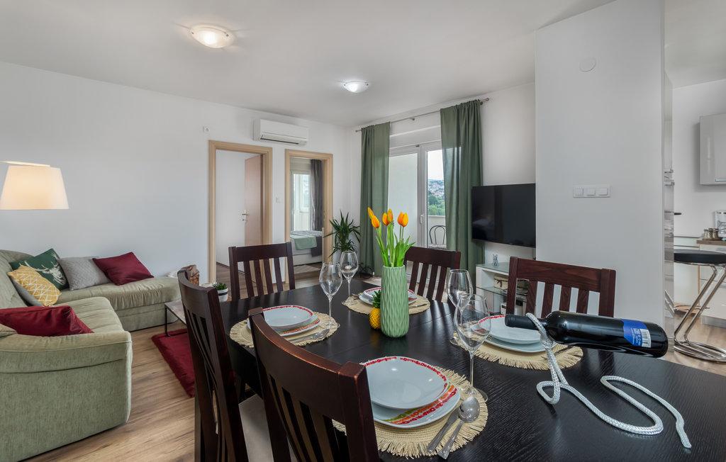 Welcome to a fully and modernly equipped comfortable apartment (65 m2 - 1st floor) located in the quietest and best rated area of the city (Kalvarija - Panos 30). The property is located 5-7 minutes walk (300 m) to the first beach (Bribirska obala), Marina Novi, shops (Lidl) and restaurants and 10 minutes walk to the city center. This air-conditioned apartment has 2 bedrooms, a large living room, 2 balconies with a beautiful view of the marina and the city, a fully equipped kitchen and a bathroom with all necessary appliances and kitchen and hygiene supplies. Apartment Sanja has 3 stars and has free private parking, as well as free WiFi throughout the property. Distance from the Trsat Castle is 40 km; 30 km from Rijeka Airport (Krk)..., If you want true relaxation, peace and quiet, apartment Sanja is the right choice for you.