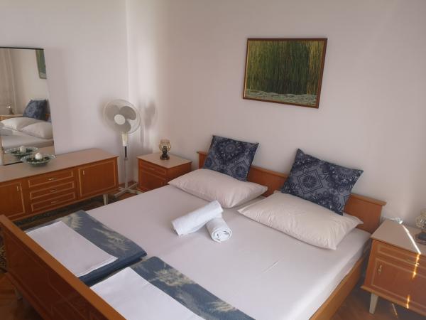 Vesna Apartment is located five minutes walk from the sea and beautiful park and 10 minutes walk to the city center. Guests have an apartment for 6 people with 2 extra beds. Parking for a minimum of 2 cars is provided and guests can also use the back terrace with an outdoor fireplace. The apartment is furnished with three bedrooms, bathroom, toilet, living room and kitchen, a terrace with a beautiful sea view of 12 m2 and air conditioning, refrigerator, SAT TV, and washing machine and dishwashing. Welcome.