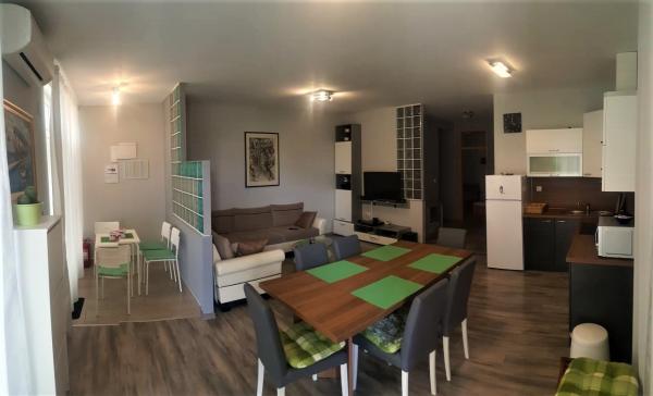 Newly decorated and modernly equipped apartment in a quiet and flat area of Novi Vinodolski, located on the ground floor of a three-story building near the sea and the city center. The facility is located in the HIT-MARINA apartment complex, 10 minutes walk to the center and 5 minutes walk to the first beach. Shops nearby: 1. Gavranović 30m 2. Lidl supermarket 50m 3. Tomy market 200m 4. Plodine 230m The first Cafe bar with a terrace is 10m away. Only 1km away is a tavern, and a large vineyard with a tasting room of top-quality wines, a restaurant and a shop with wines and other local gastronomic products. The hinterland of Novi Vinodolski offers various opportunities for walking, cycling with groomed paths, viewpoints, rural tourism and the possibility of horse riding. In addition to numerous restaurants, a wellness and SPA center nearby, and a beach with crystal clear sea, without urchins and algae, there is a long promenade. In addition to standard sports fields, the town also has a diving club. The towns of Selce and Crikvenica are only 6km away, and the island of Krk and the airport are 35km away.