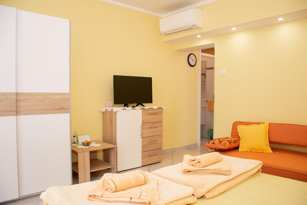Dear visitors, in our facility we offer you two beautifully decorated double apartments. The facility is located in a quiet part of Novi Vinodolski, just a few minutes walk from the city center and the main beach. The apartments have a view of the sea or the old town. Air conditioning is not included in the price of the apartment and is paid separately for 8 euros if you want to use it. By paying an advance payment of 30% of the amount, you confirm your reservation. We hope that you will choose our apartments for your vacation. Thank you.
