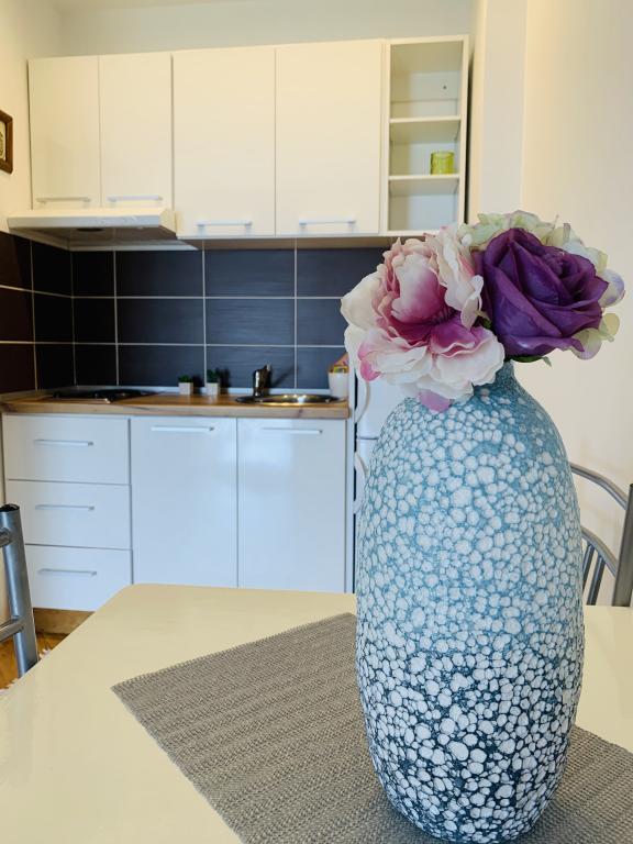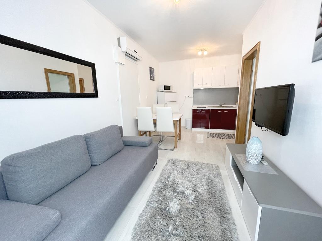 Kudos to the hosts as well as for a perfectly clean and tidy apartment! Nice view of the sea and the possibility of using the shared terrace and barbecue. The owners are very accommodating and ready to help