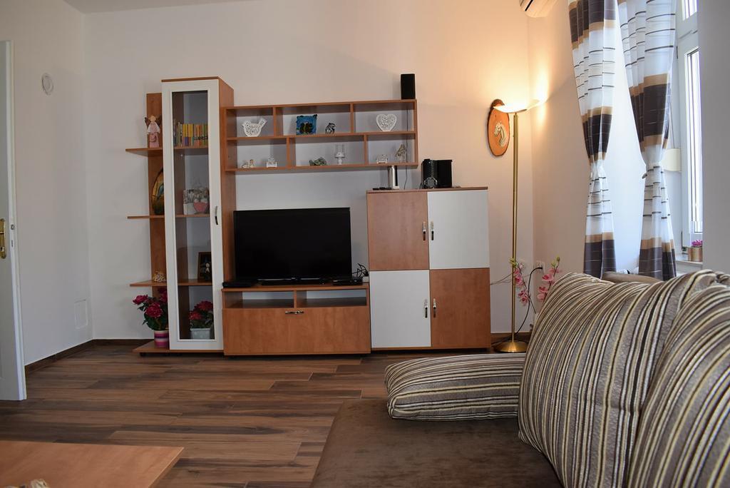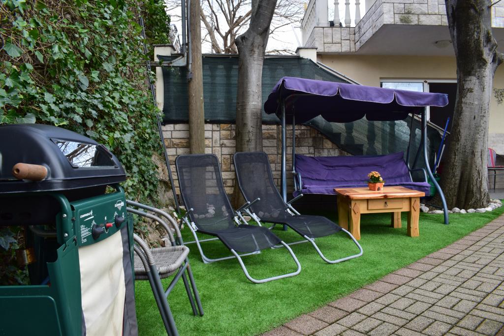 We spent in this apartment 10 days. Everything reached our expectations. Very nice and helpful owner Mrs. Zana, very clean, good equipped kitchen, bathroom and rooms. Every room has a separate air-conditioning and TV. Nice garden with good equipment for kids (basketball, table tennis, mini football gates and other), place for barbecue and sitting place outside. The apartment is located just 5 minutes on foot to center of the city with restaurants and shops and one min to the bakery and seaside. We recommend this apartment as fantastic. We will come back here for 100%. Thanks.