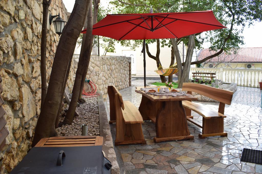 We were in A2+2 and we are very satisfied. Mrs. Žana is pleasant, accommodating and helpful. He enjoys talking to his guests and makes you feel really comfortable. You have everything you need in the apartment. The apartment has a large terrace, where you can enjoy coffee or barbecue. The location of the apartment is excellent. You have a bakery and a shop across the street, the beach is a few minutes' walk away, and the center as well. Fans of larger stores also have a Lidl 500 meters from the apartment. A big plus is also a large parking lot. All in all, if you choose these apartments, you will not go wrong