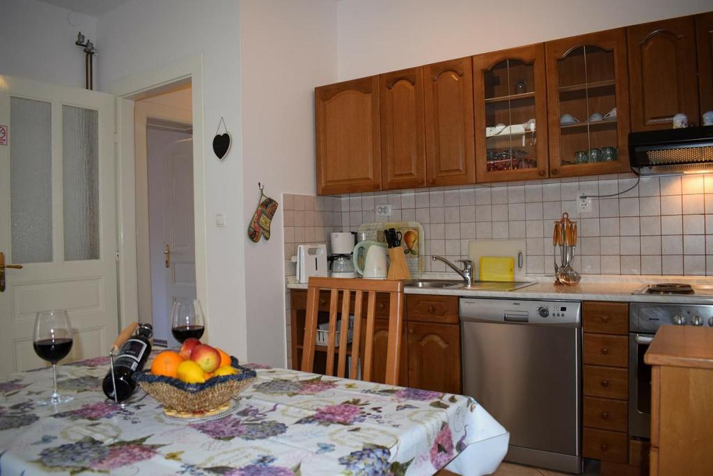 I agree with previous comments - apartment had everything needed for a holiday. The hostess was very friendly, on arrival we were led on a tour of the place and took care to be satisfied. All very professional, which unfortunately is often not the case in Croatia. The house is in a good location, 5 minutes from the beach, the same distance from the center, and a few minutes from the bus station. It has a beautiful large garden with a swing (great for kids). The apartment was clean and equipped with everything needed - microwave, kettle, toaster, TV .... Fruit and chocolate welcome, which is a nice gesture. The house is on the main road, but is separated from it by a wall and greenery and the noise was not a problem. Full payment for the stay on arrival. Thanks again to Mrs. Djak and hope to someone you soon!
