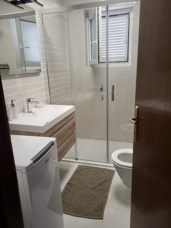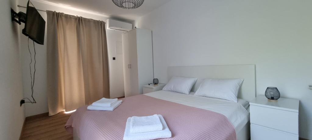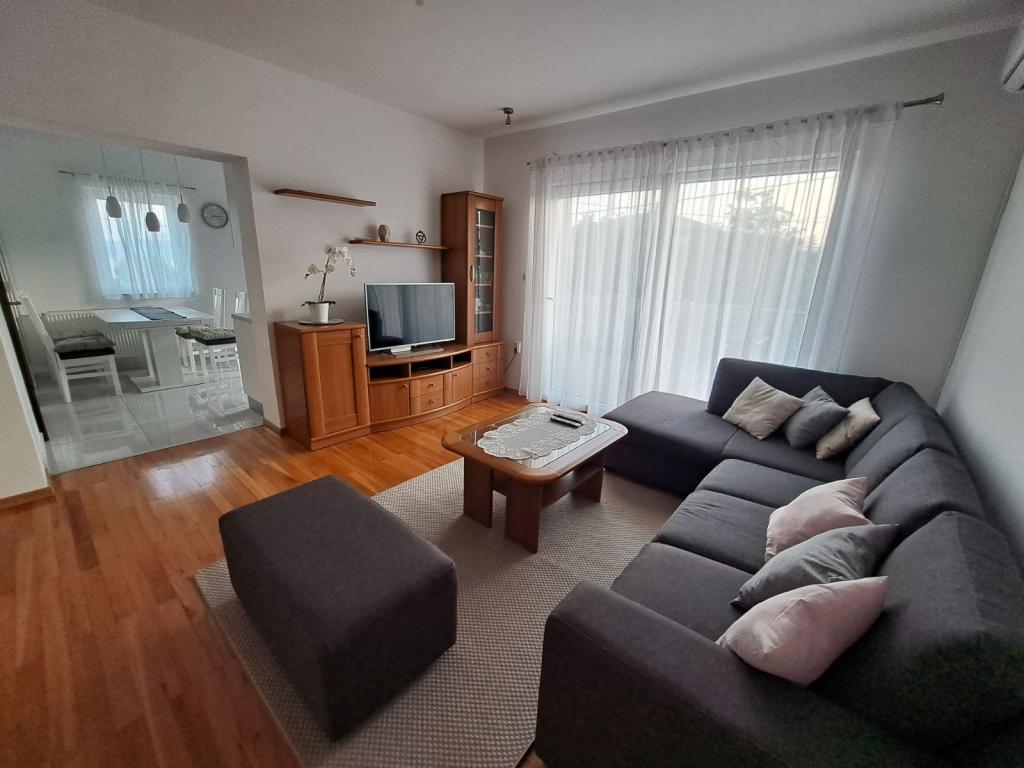The apartment is located in a quiet part of town, 5-10 min walk to the beach. Two bedrooms, two bathrooms, a large living room, kitchen and terrace make it ideal for a family vacation! Parking right in front of the apartment!