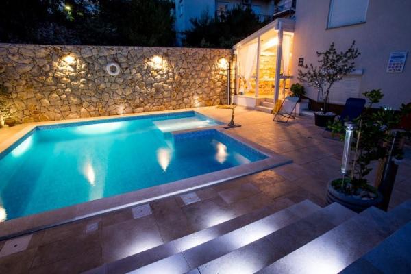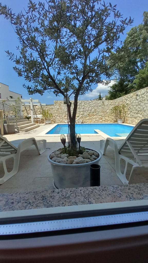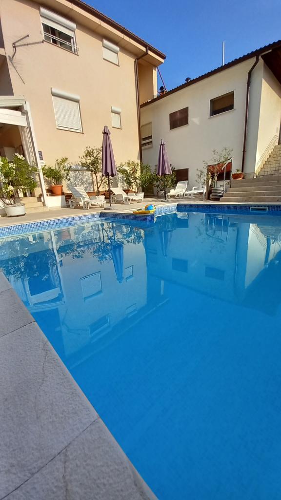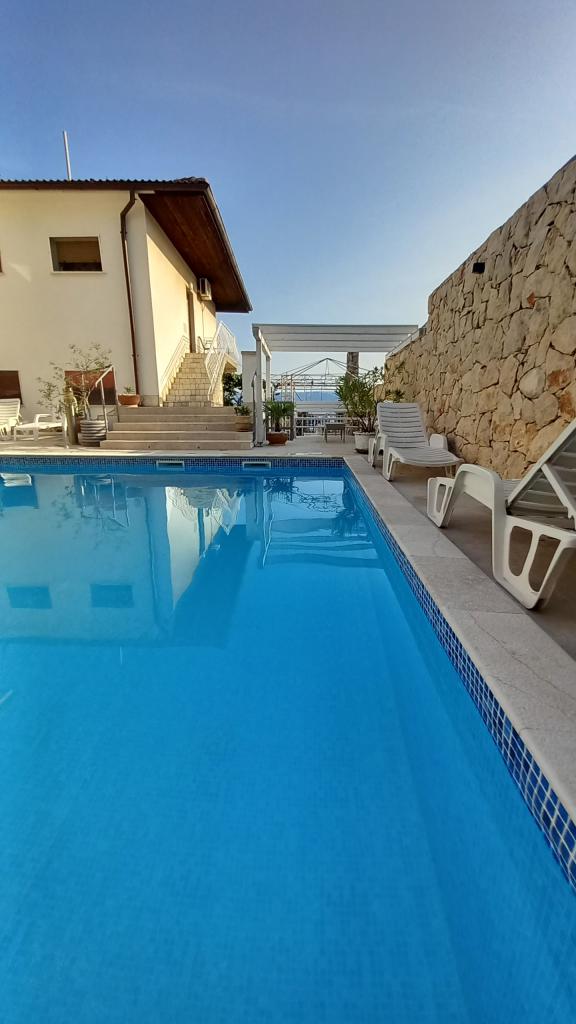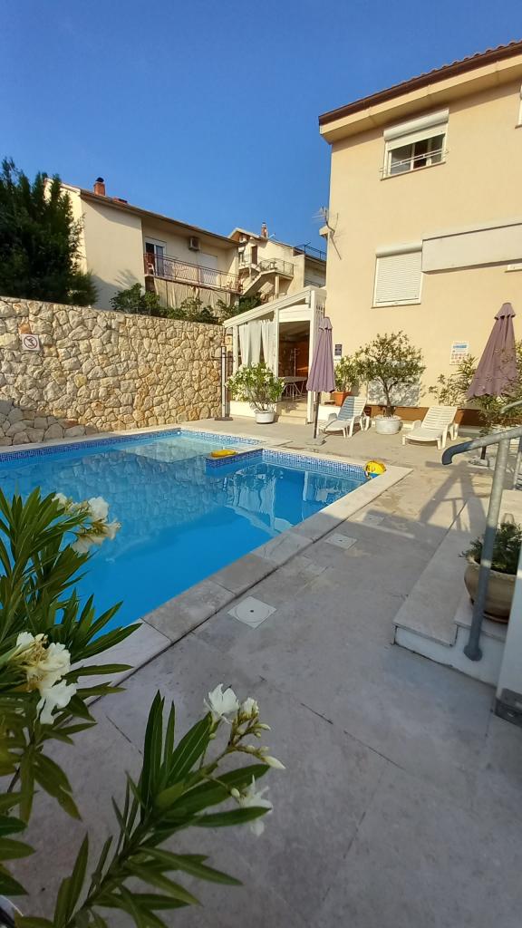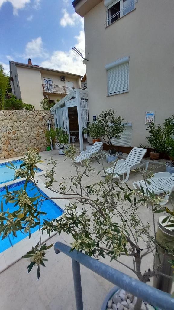 Family Apartments -ŠVOB - with swimming pool; for family vacation with children, grandchildren (family-friendly). We do not accept groups of young people. Swim in the sea and pool, relax with a massage, sauna. The apartments are located in a great location in Novi Vinodolski, approximately 350m from the beach (suitable for children and adults), the Lišanj hotel, park, promenade by the sea and the city center. The apartments are fully equipped. Each apartment has its own entrance, balcony or terrace with a sea view, garden, shared outdoor pool. *We are open from 28.04. - 15.10. (seasonal). - In the house - with swimming pool on offer: 5 family apartments (2 larger and 3 smaller), terraces/grill, 2 outdoor showers, toilet. Parking in front of our house (1 parking space per apartment), WI-FI. *Parties for young people are not allowed! *First min./Last min. PRICE is valid for 2 adults + 2 children