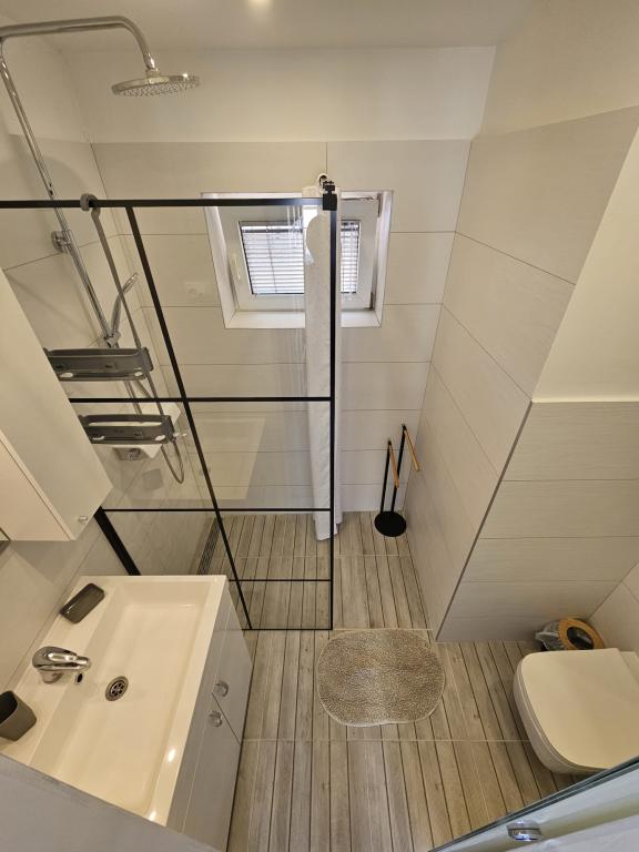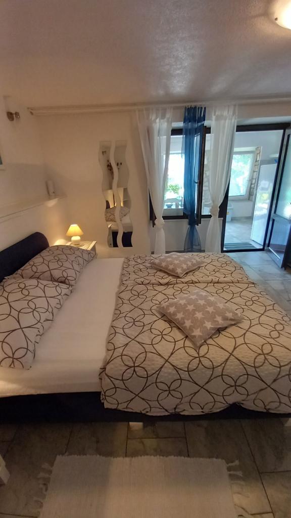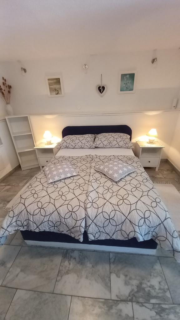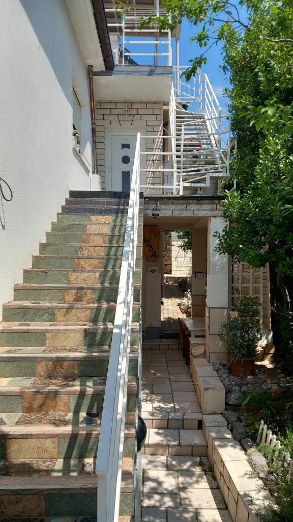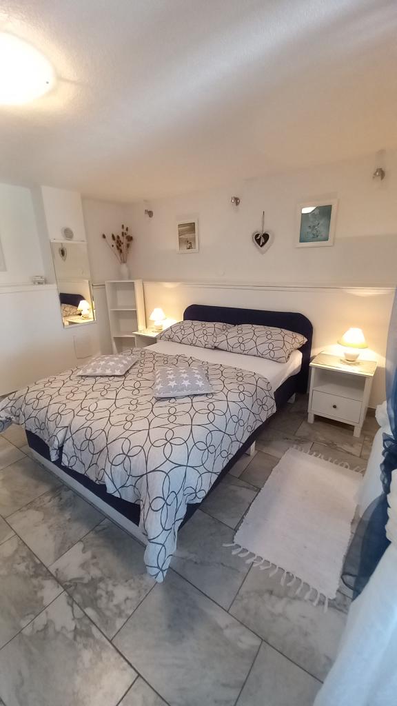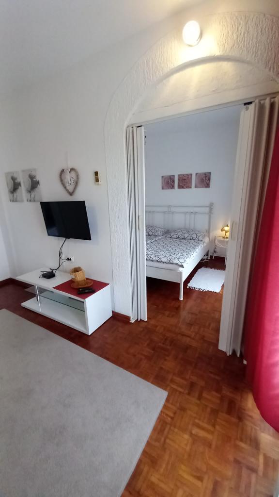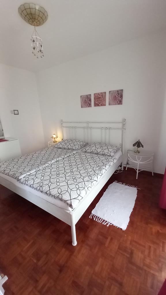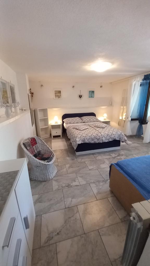 I miss that view, now. !!! The apartment is well stocked, everything is there except for an iron and hair dryer, you have to bring it with you. Everything is furnished with taste, modern and clean. A star deduction, because there is no air conditioning in the room under the roof, the fan could not withstand the heat. Mrs. Svob was very nice and helpful. It wasn't far to the beach. And to the city center, where you can find plenty of restaurants and cafés in the evening, are also only 5 minutes away. Konsum Market and bakery also in the city center. Lidl is also available in town. Parking spaces were also there. All in all I can only recommend! Greetings to the Svob family!