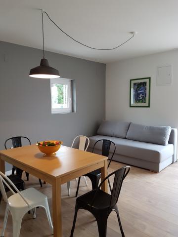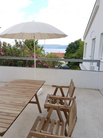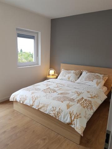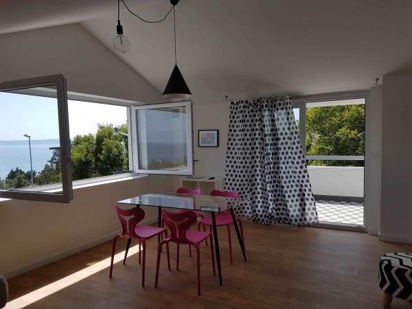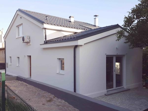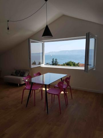 Fully new apartments on the ground floor (above the basement floor) and on the first floor, with separate exterior entrance, in a quiet and green environment. Spacious rooms with panoramic sea views, the island of Krk and Velebit: - one bedroom with a double bed and a living room with pull-out bed 160x200 cm - modernly equipped and spacious bathrooms Kitchen equipment includes: cutlery and cookware, fridge, electric stove, sink, microwave oven (apartment 1) and oven (apartment 2), coffee machine, kettle and dishwasher (apartment 2). Free wi-fi, satellite television and air conditioning. Close to beaches, shops, restaurants and city center. A parking space is provided
