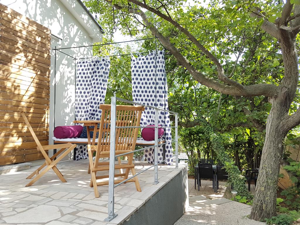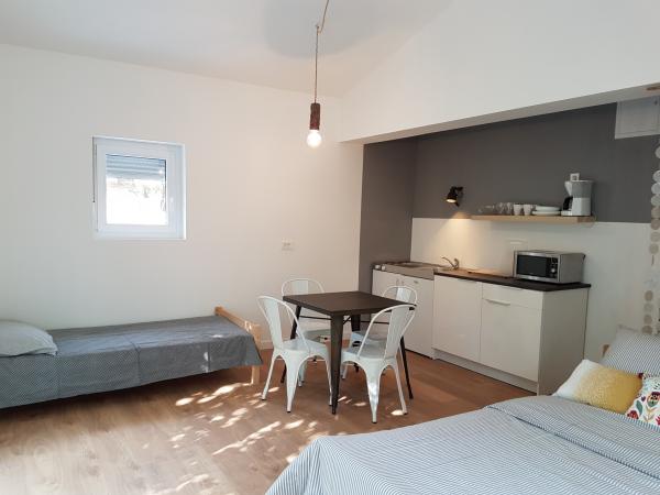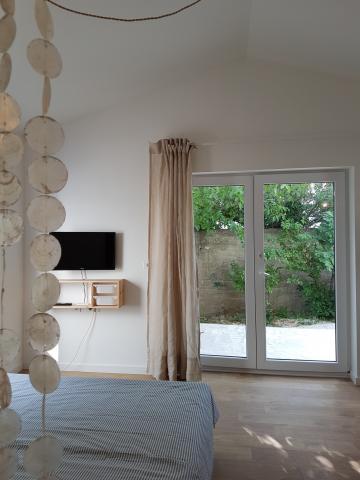 Residential tax is included in price.There really isn’t the slightest flaw. The apartment is beautiful - extremely clean, neat, with lots of light and functional. Beautifully furnished and has really everything you need. The apartment has a space in the garden where it is pleasant to stay all day because of the natural shade. The beautifully landscaped beach is nearby, it is neat and has accompanying facilities. Shops are nearby. And finally, the owners, Mrs. Kristina and Mr. Boris are wonderful people, friendly, accommodating and do everything to make guests feel comfortable and welcome. We will definitely come again.