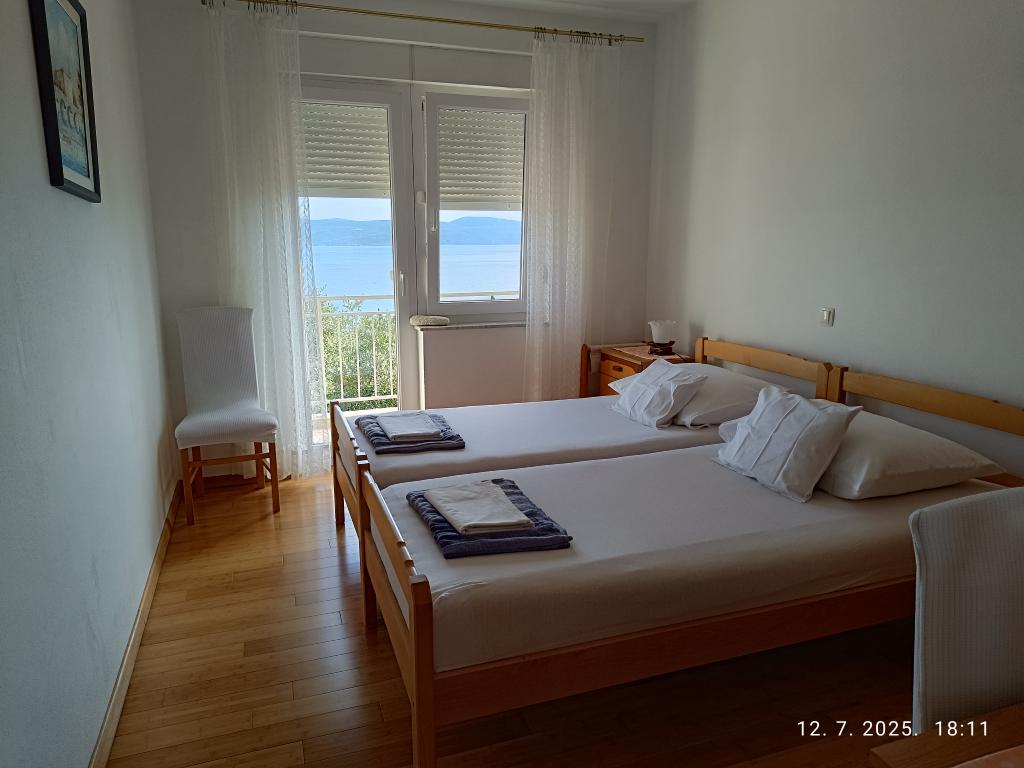 Fantastic apartment, 2 large bedrooms and a living room with a kitchen. Everything clean and fragrant. Beautiful view from the balconies of the Kvarner Bay and the island of Krk. The apartment has everything you need, a well-equipped kitchen, a bathroom with a shower. Very nice and helpful owners! A nice gift for guests in the fridge. Apartments with separate entrances, do not interfere with the owners' private area. Parking at the entrance. Very close to the water. We are very pleased! Greetings to Mrs. Katarina! ADAJ