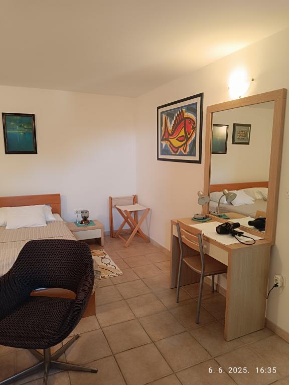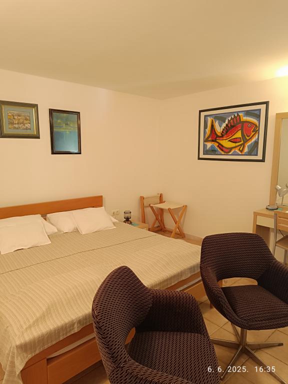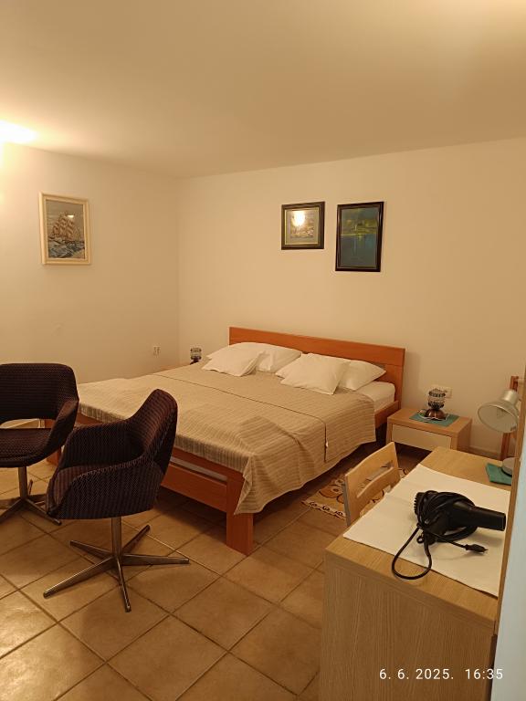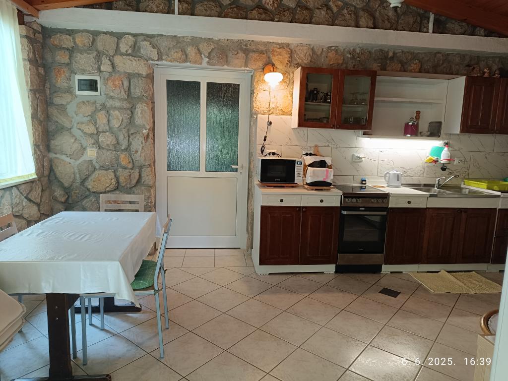 Two larger two-bedroom apartments (60 m2) are located on the 2nd floor of the house with a beautiful sea view, and a smaller one-bedroom apartment (45 m2) is located in a separate stone (rustic) house next to the main house with which it shares a garden and yard. Free parking is provided. A barbecue with a terrace in the garden is shared by all guests. The distance from the sea is approx. 250m downhill, where there is a promenade with restaurants and different types of beaches. The distance to the center is approx. 1.5km, along the promenade along the sea.