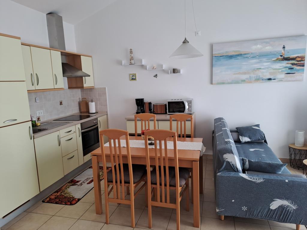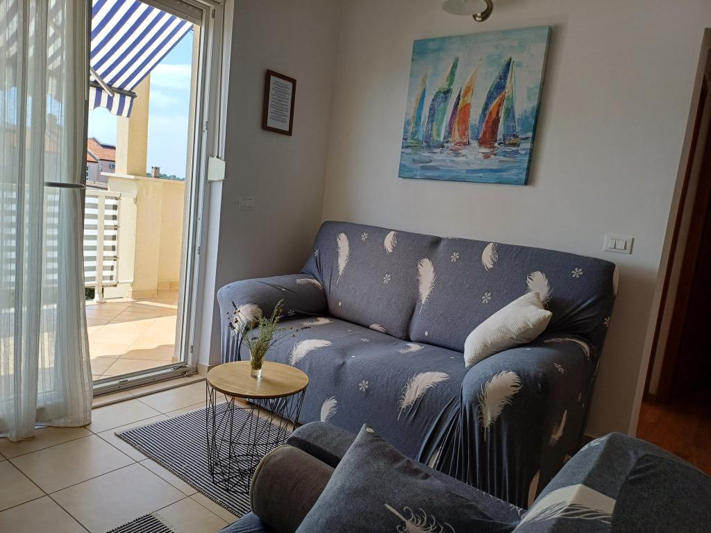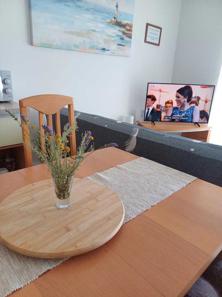 Apartment Nina is located in a quiet part of the city of Novigrad, in the Šaini district, on a gentle hill with a beautiful view of the city and the sea. The apartment is located on the second floor of the building and consists of an entrance hall, kitchen with dining room, living room, two bedrooms and a bathroom. In the kitchen there are household appliances and aids even for the most demanding. The air-conditioned living room provides relaxation with smart TV and WiFi. There is a double bed in the large bedroom, and two beds in the small room. The second air conditioner is located between the two rooms. The most beautiful part of the apartment is the terrace where you can enjoy your morning coffee with a view of the sea and the village, or the evening sunset. You can use the grill, which is located in the yard. In addition to the apartment, we also offer the use of the swimming pool. You can complement your stay with a variety of sports, cultural, social and gastronomic events, which are many in Novigrad and its surroundings. Novigrad has excellent traffic connections with the whole of Istria.