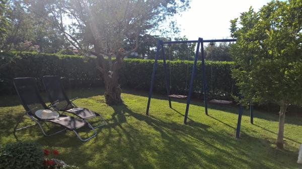 Apartment and with a separate entrance. Fully equipped. Linen, air conditioning, satellite TV, Wi-Fi, parking, use of grill and outdoor shower. Surrounded by a park. Swings for children and deck chairs. We are located approximately 100 m from the sea, on the beach you can walk.