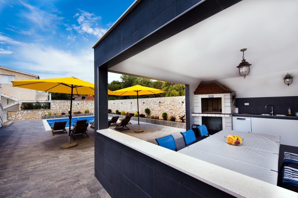 The pool was built in 2020 and is heated to a temperature of 26°C. Apartment 4+2 will be equipped with a new kitchen in 2024. Photos will be available in May 2024. Due to shared facilities (barbecue, outdoor kitchen and swimming pool), we do not host large groups (no more than two apartments per group).
